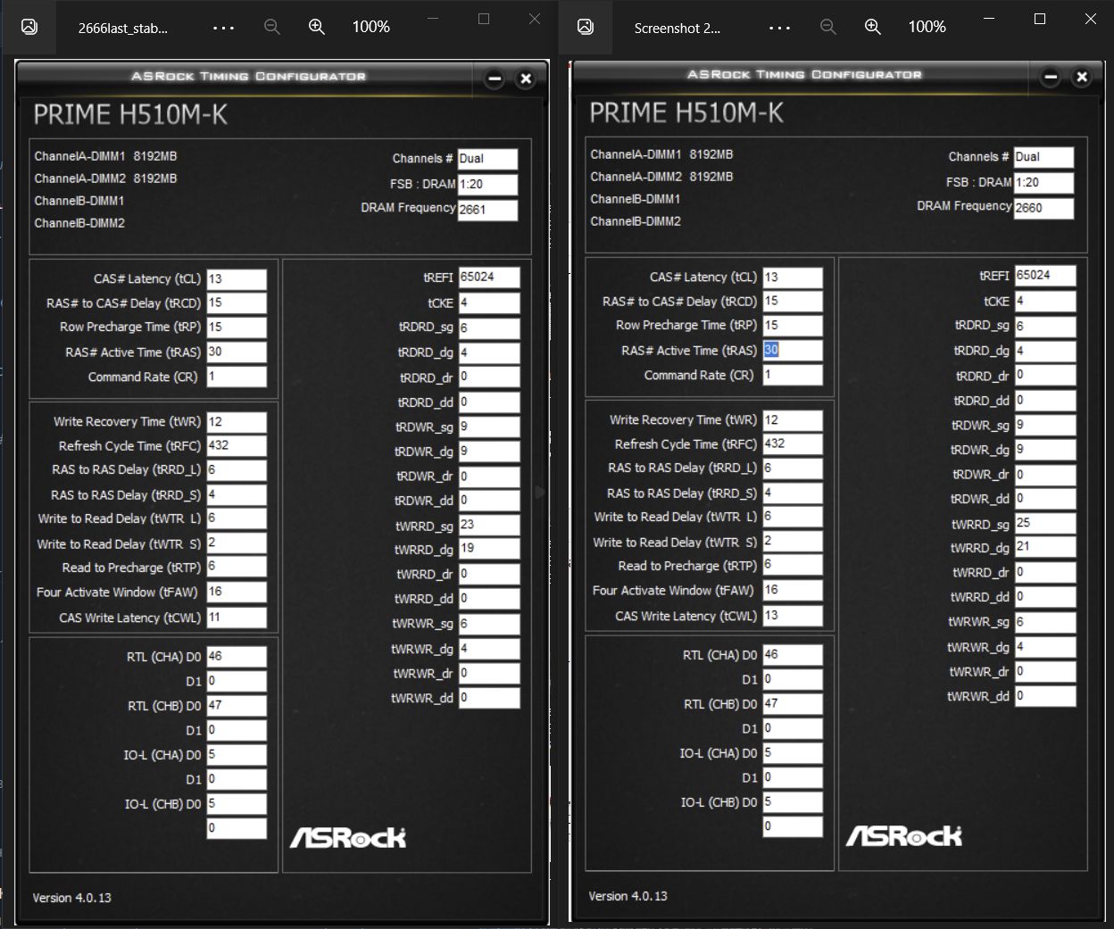 tWRPRE соответственно 27-29. Первый у меня работает лучше в играх, плавнее. И тесты все прошел, синтетику и игры. Второй в аиде чаще показывает высокие результаты, в играх статтеры там, где в первом гладко. RDWR в первом 9 минимум, второй позволяет ужать до 7, я тестил 8-9 --- в принципе, если бы я сразу делал по правилам CWL=CL (-1), то я бы сейчал был на CWL13, и не знал что CWL11 работает не хуже, а может и лучше.