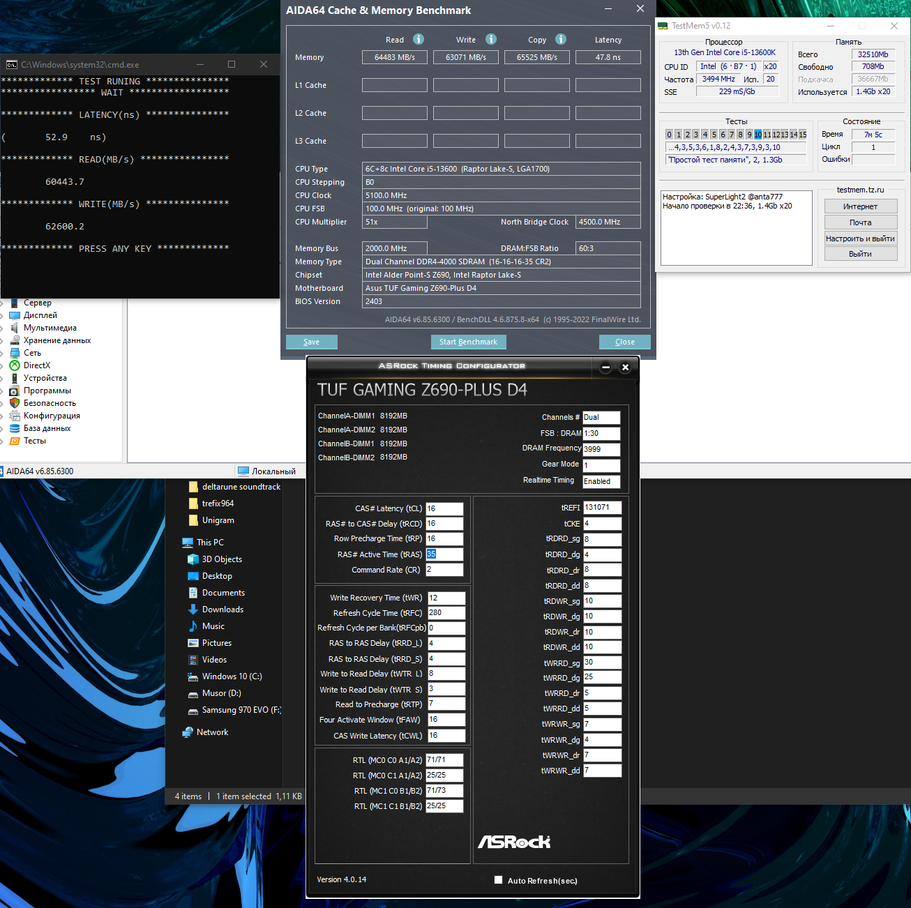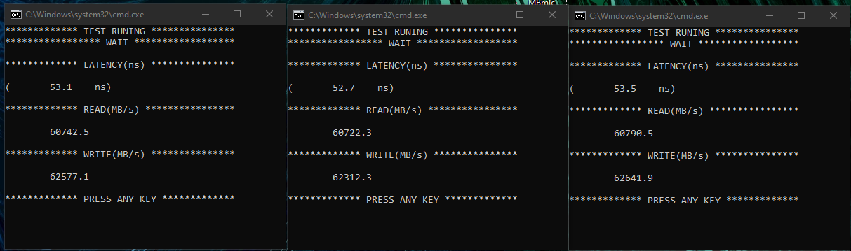 Т.е. я "распустил" tREFI и сделал рефреш памяти только по tREFIx9, как видно производительность примерно равна tREFI=65535 и ошибок на огромных tREFI нет. М.п. не возмущается. ACT рапортует о применении tREFI. Работу tREFIx9 видно в бенче и тесте памяти. Возможно это довольно бессмысленно или даже вредно, но для тестов позволит более точно подбирать рабочий tREFI, потому что рефреш в данном случае не средний, а точный.