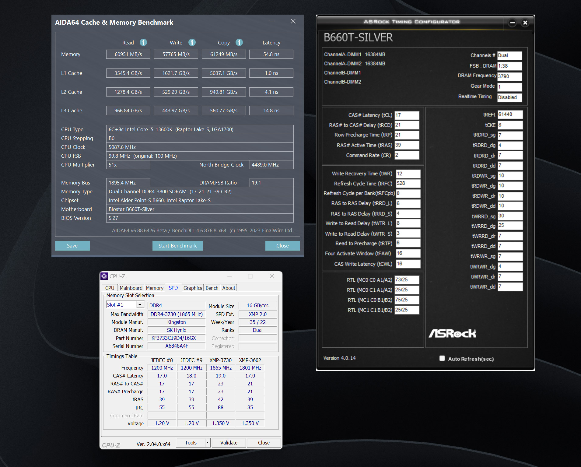 Всем привет, недавно воткнул в комп с чипсетом B660 память Kingston FURY Beast Black KF437C19BB1K232. В целом не самый унылый для Hynix экземпляр попался, CL17 - 3800, CL19 - 4266 (gear1), CL22-4800. Но столкнулся с неприятным фактом, что при абсолютно стабильной работе на 4266, после отправки в режим сна (S3) комп не просыпается. Включается, но так и висит с потухшим экраном. Никто не сталкивался с таким? Глюк биоса, исправления которого ждать бессмысленно, или может где-то надо настройки подкрутить? Максимальная частота при которой просыпается исправно - 3800. С gear2 на всех частотах просыпается отлично. Отдельно попрошу глянуть, нужно ли что-то ещё подкрутить по таймингам в текущей конфигурации? (tRDRD уже не уменьшается, tRFC запас минимальный, с остальным особо не экспериментировал)