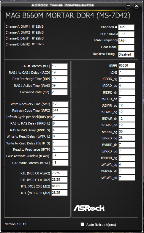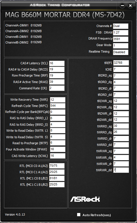 Постарался внимательно почитать тему и советы по оптимизации таймингов. Память Crucial Ballistix BL8G32C16U4W.M8FE четыре планки по 8 Гб. Подобрал тайминги и протестировал, вроде все нормально. Посмотрите, может где что упустил? Поправьте, если не сложно.