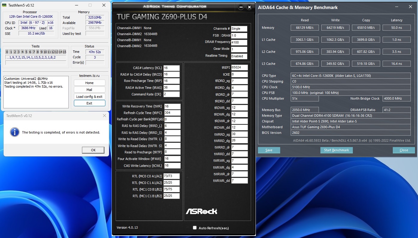 Всем добрый день. Прошу посмотреть результаты по разгону, возможно я что-то упустил и можно подправить значения. Конфигурация ПК: i512600K, asus tuf gaming z690, F4-3600C14D-32GVKA. Vdimm 1.45, SA 1.25, IO AUTO. По таблице Anta777 стремился ужать тайминги к значениям в столбцах "Лучше", но более низкие значения приводили к нестабильности. При запуске testmem5 в течении 2-3 минут сразу сыпали ошибки. Я так понимаю, это максимум который может дать данное железо, работает стабильно, каких-то непаладок не замечал.