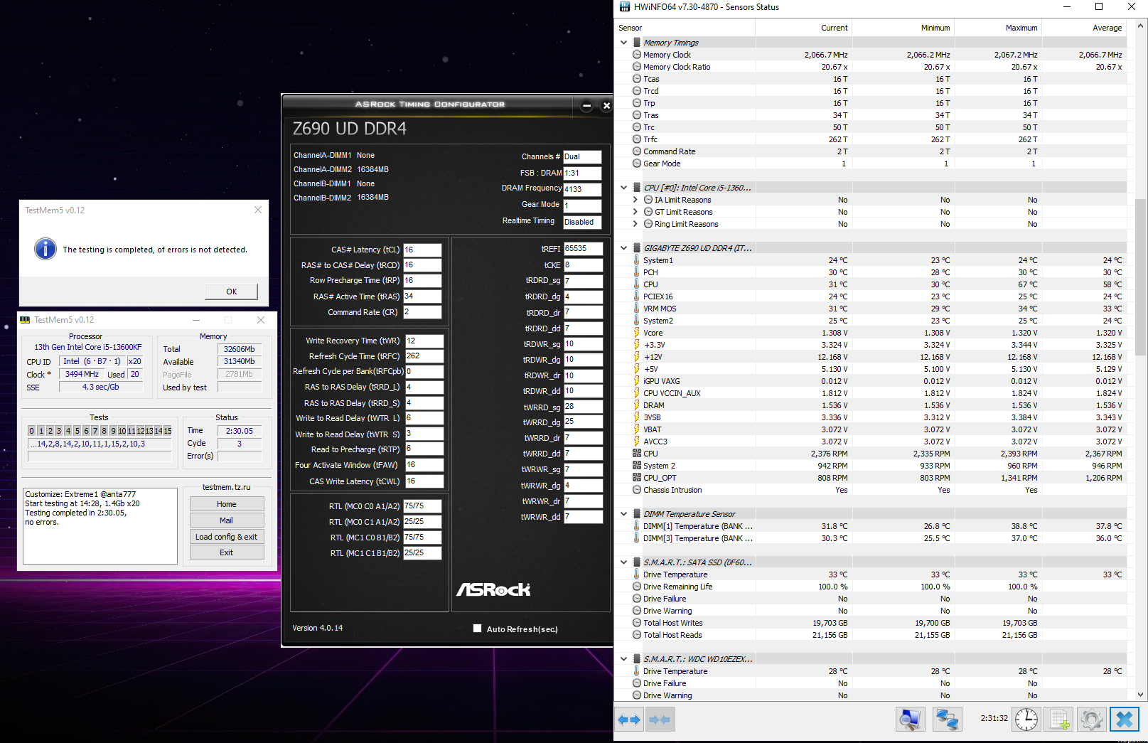 Наконец-то разобрался... На всех последних 3х биосах tRCD не ехал, даже на 3866 нужно tCL+2 было...Взял 4133 наконец-то.. vddq\sa 1.26\1.3 адекватно для 13ген ?