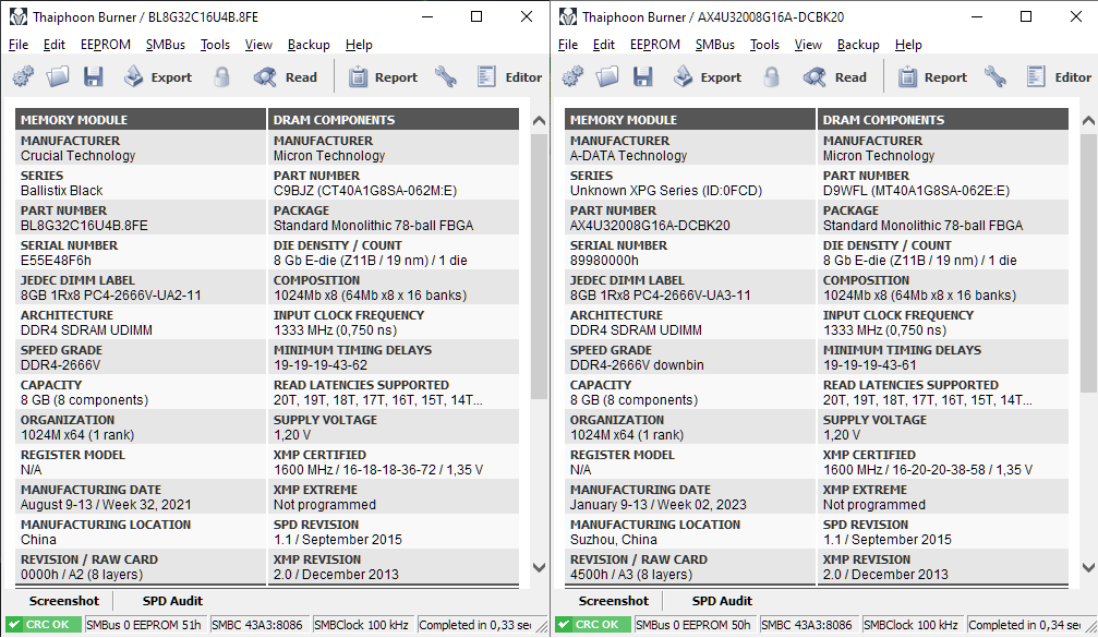 Расшифровка чипов, находящихся в модуле памяти у разных производителей