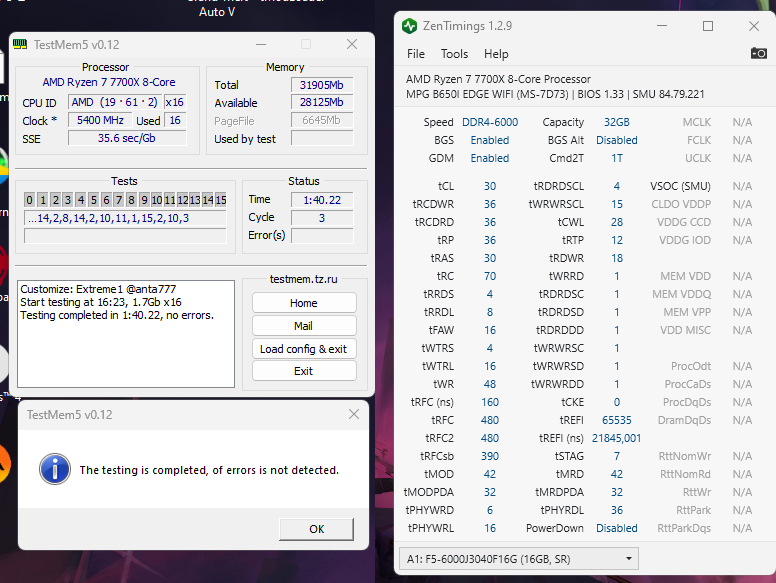 Здравствуйте, не особо разбираюсь в таймингах и ручном разгоне и хотелось бы задать вопрос вам-знатокам. Память при выставленном в биосе EXPO профиле 6000/5600 сыпет ошибками, при том не всегда, может пройти тест без ошибок, а уже следом запущенный тест их выдает. Пробовал лишь поднимать напряжение. Бывает сутки все работает, а на следующий день уже крашит. Подскажите в какую сторону копать? Спасибо.
