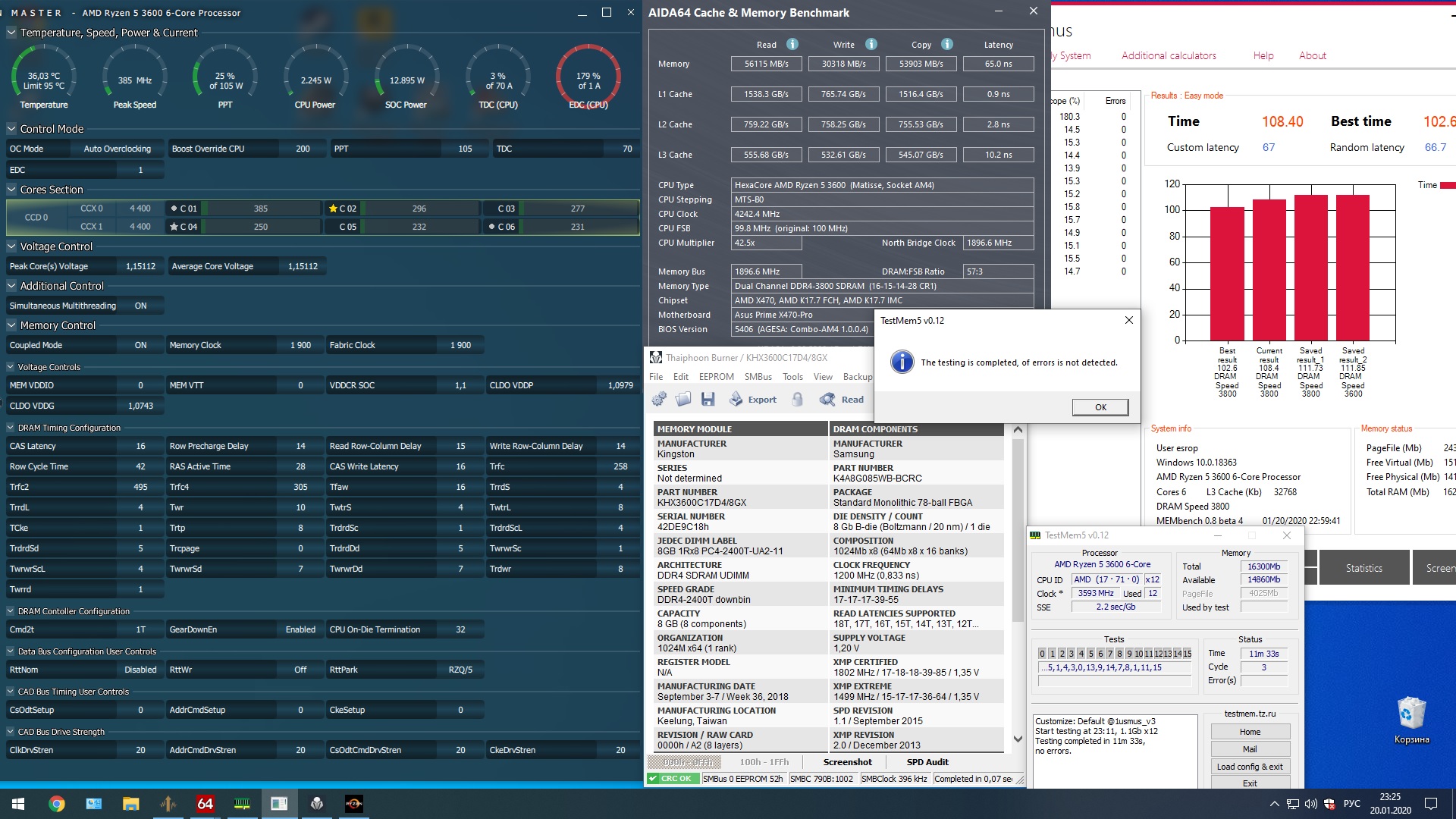 При вольтаже vdram меньше чем 1,65 уже появляются ошибки, даже на safe пресете с калькулятора. А если до 1,4 опустить то система не стартует и приходится сброс биос делать. На soc поднял до 1.125 чтобы стабилизировать иф на 1900, при 1,1 было нестабильно 1-2 раза в час перезагрузки. Я посмотрел что на b-die люди и 1,52 ставят вольтаж) поэтому особо не парился за 1,47. Рукой трогал планки во время TM5, они чуть теплые, показалось приемлемо) Не желательно на постоянку оставлять в таком значении?