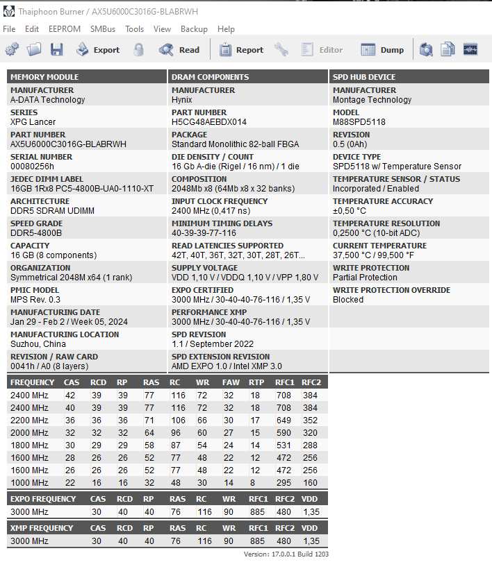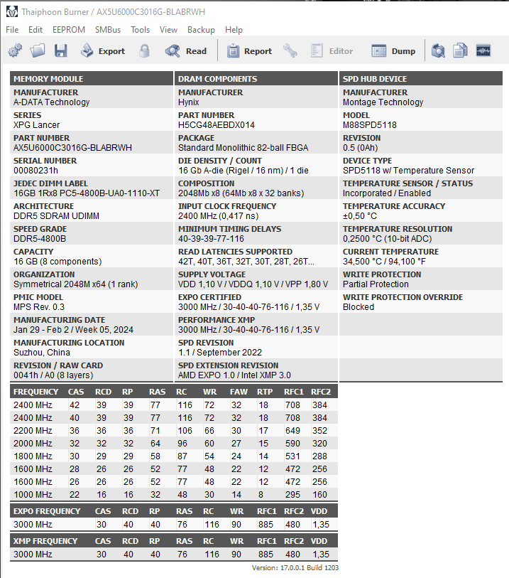 Странно, вот моя модель ОЗУ AX5U6000C3016G-DTLABRWH Но на сайте производителя материнской платы https://ru.msi.com/Motherboard/X670E-GA ... upport#mem моей памяти нет, точнее есть платы которые с более высоким CL, и есть память которая сходится по одной из частей названия или это AX5U6000C3016G или DTLABRWH