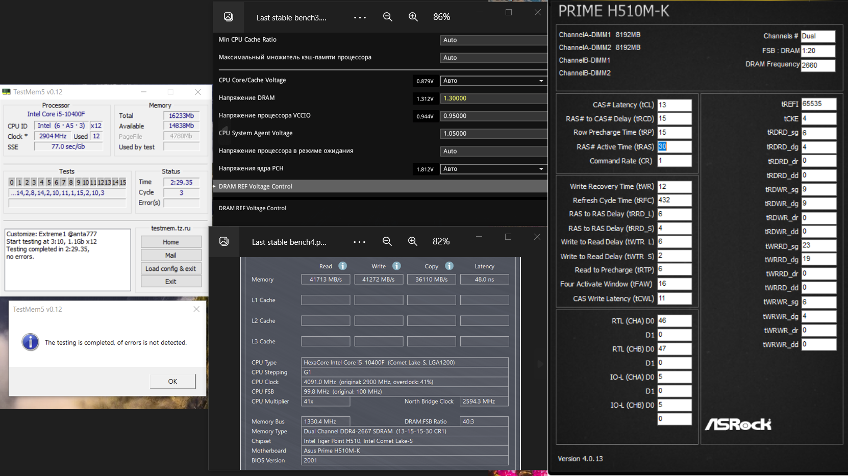 duc9pupkina Здорова! Остаётся оставить Третички(или TRDWR-ы поставить по 11) , Трефи на авто, TCKE тоже на авто > затестить аидой (есть ли прирост), вольтаж на 1,35 так как чипам не нравится больше(возможен перегрев в следствии завышеного вольтажа и Трефи - отсюда и ошибки, т е ошибки из-за перегрева, а не из-за неправильных настроек, там парень показал что у него тест на аналогичной плате идет 2,2 часа, так что 1,5 часа это на Z490 у меня идёт и на скорости 3200, поэтому 1,5 часа это не константа для твоей сборки!
