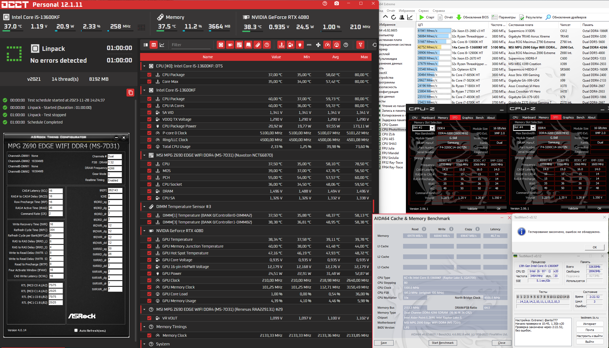 Отсюда назревают следующие вопросы: упёрся ли я в потолок IMC для 2x16 dual rank? Или мать не тянет бОльший разгон двухранговой памяти? Либо же просто попалась неудачная память (что маловероятно). Полагаю, что аналогичные b-die 2x8 спокойно погнались бы до 4000cl16 LT при вольтажах, которые сейчас имею c 2x16 3600cl16.