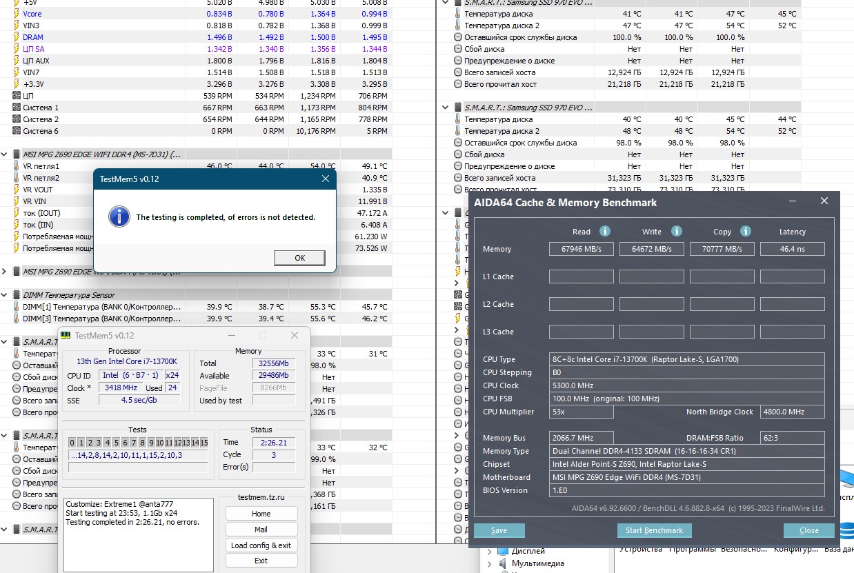 Всем привет. Имеется память Kingston FURY Beast Black [KF432C16BB1K2/32]. Чипы памяти Kingston горят разные программы. i5 12400 (без F), плата Gigabyte B660 Gaming X. Выше 3466 (с 2мя ошибками в тесте) не заводится. (на авто таймингах), гир 1. 3333 без ошибок. Я ноль в теме таймингов и разгона. Меня смущает большая задержка. Хотелось бы пониже.