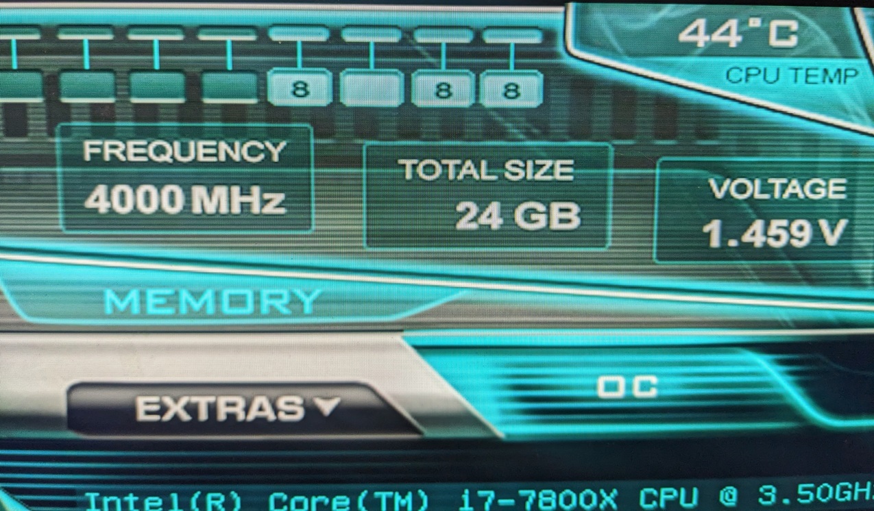 Система: CPU i7-7800x, Cooler - Noctua NH-D15 + Scythe Kaze Flex Slim 140, MB EVGA X299 Dark, RAM 4*8Gb (2 комплекта G.Skill [F4-3200C14D-16GTZR]). Проблема следующая: Память в дефолте, при активации XMP 3200, руками до 3400 работает нормально и скорости соответственно увеличиваются при разгоне (SA и IO зафиксировал на 1.3, 16-16-16-32, 1.45, проц и меш не трогал вообще) Но начиная с 3600 скорость снижается значительно, а не увеличивается, и на 3800-4000 например в биосе отпадает 2 канал памяти (как я понимаю, один и тот же). Как я понимаю он отпадает и раньше, получается 3х канал, из-за этого и падает скорость, просто в утилитах еще канал видет, по факту не работает. При этом, повторюсь ниже 3600 все норм. Но я такую память брал не для того, чтобы гонять на 3400. Да и МП как бы бралась как раз для нормальных результатов.