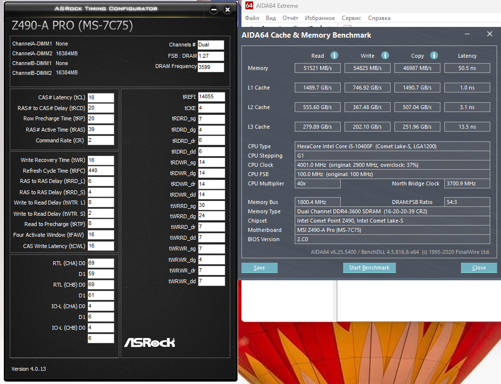 Приветствую. Немного разогнал ОЗУ. Прошу дать замечания, предложения, что можно еще поправить в разгоне? Kingston FURY Renegade [KF436C16RB1K2/32] 32 ГБ (3600 16-20-20 1,35V). Мать MSI Z490M-S01 (биос обновил). Проц i5 10400f. Выше 4133 MHz пойти не удалось, там либо не запускается либо после биоса синий экран. При таких настройках и на напряжении озу=1,42V сыпет ошибки в мемтесте(Анта), поэтому пока оставил на 1,5V. При напряжении озу=1,5V прошел 1,5часа меметеста (Анта) без ошибок. На ощупь озу во время тестирования горячие, в простое еле теплые. Корпус продувается. Инфа из Тайфуна