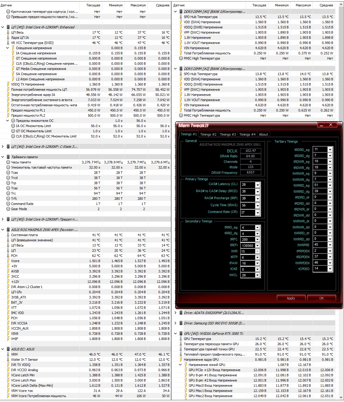 Какой и должен быть. А в quick 0.1 это погрешность. Прогоняй несколько раз их всегда. Далее: 1. RFC 280 проверял его стабильность вообще? вангую, что y-cruncher это не пройдет с вероятностью 80% (тест N32). И должно быть либо 288 либо 272. 2. RRD_L/S=я бы оставил 8 3. WRRDsg/dg лихо ты их загнул, и че, реально без ошибок все? надо 58/50 58/48 56/46 54/46 4. CWL можно пробовать 24 5. CCD_L/CCD_L_S=12 в биосе как RDRDsg 6. REFI максимум и ЕЯдра отключать и ринг поднимать до стабильного максимума для тестов 7. Энергосбережение выключено, просто на всякий напоминаю. Как у вам это в асусе.. PDD=0 итд
