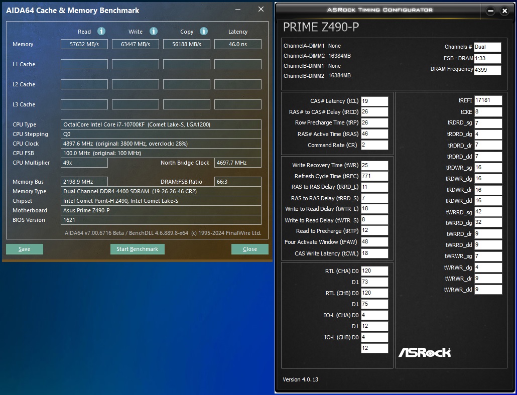 Приветствую! Подскажите имеет смысл что-то трогать и принесет ли это значимого прироста или оставить все как есть? (Хотелось бы добиться более высокого и стабильного фпс в кривом таркове или поможет только смена платформы на 14 Intel или Ryzen 7 X3D с ddr5 6000-8000Mhz?) Asus z490-p, 10700kf 4.9Ghz, память 2х16 Neo Forza 4400Mhz 19-26-26-46-cr2 на hynix a-die, так полагаю. Настраивал год назад, точно не помню уже, но первички на это частоте не ужимаются, вторички какие-то трогал, но поверхностно. SA поднято до 1,4в иначе не стартует с такой частотой.