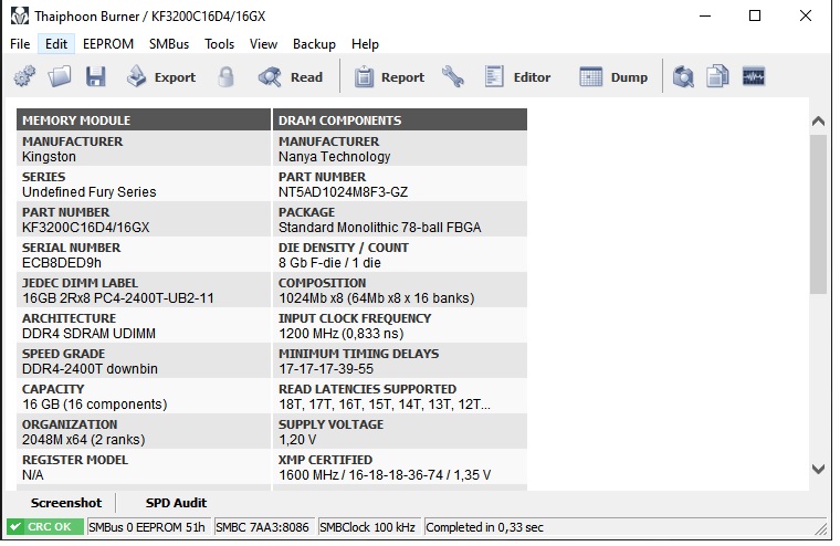 [img]Ссылка на скрин[/img] Для сбора статистики по установленным чипам памяти просьба прикладывать скрины программы Taiphoon Burner и указывать напряжения на DIMM, IO и SA![/color]