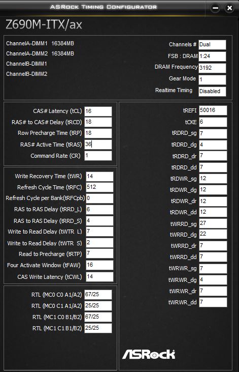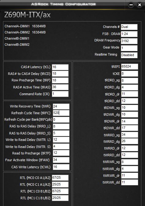 AMT - Asus MemTweakit Asus MemTweakIt 2.02.44 При настройке памяти в BIOS ставим ОБЯЗАТЕЛЬНО MRC Fast boot=disable (включаем при этом режим тонкой тренировки, если же выставим enable, то включаем режим грубой тренировки). Оптимально при разгоне памяти использовать в биосе множитель памяти 133, а не авто или 100, что даст возможность создать комфортные условия для контроллера памяти в процессоре и снизить напряжения ио и са ! Недаром в Jedec шаг между спидбинами именно 133, а не 100! Для плат с Alder Lake напряжения VDD и VDDQ на память могут отличаться не больше, чем на 300 мВ. Для плат на основе логики z690 и b660: VDD>VDDQ VDDQ>=VDD-300mV(0.3V) Лучше на VDDQ не превышать 1.25V. Вполне возможно 1.30V. MSI дает зазор до 1.40V. Для таймингов должно выполняться требование: _dr=_dd