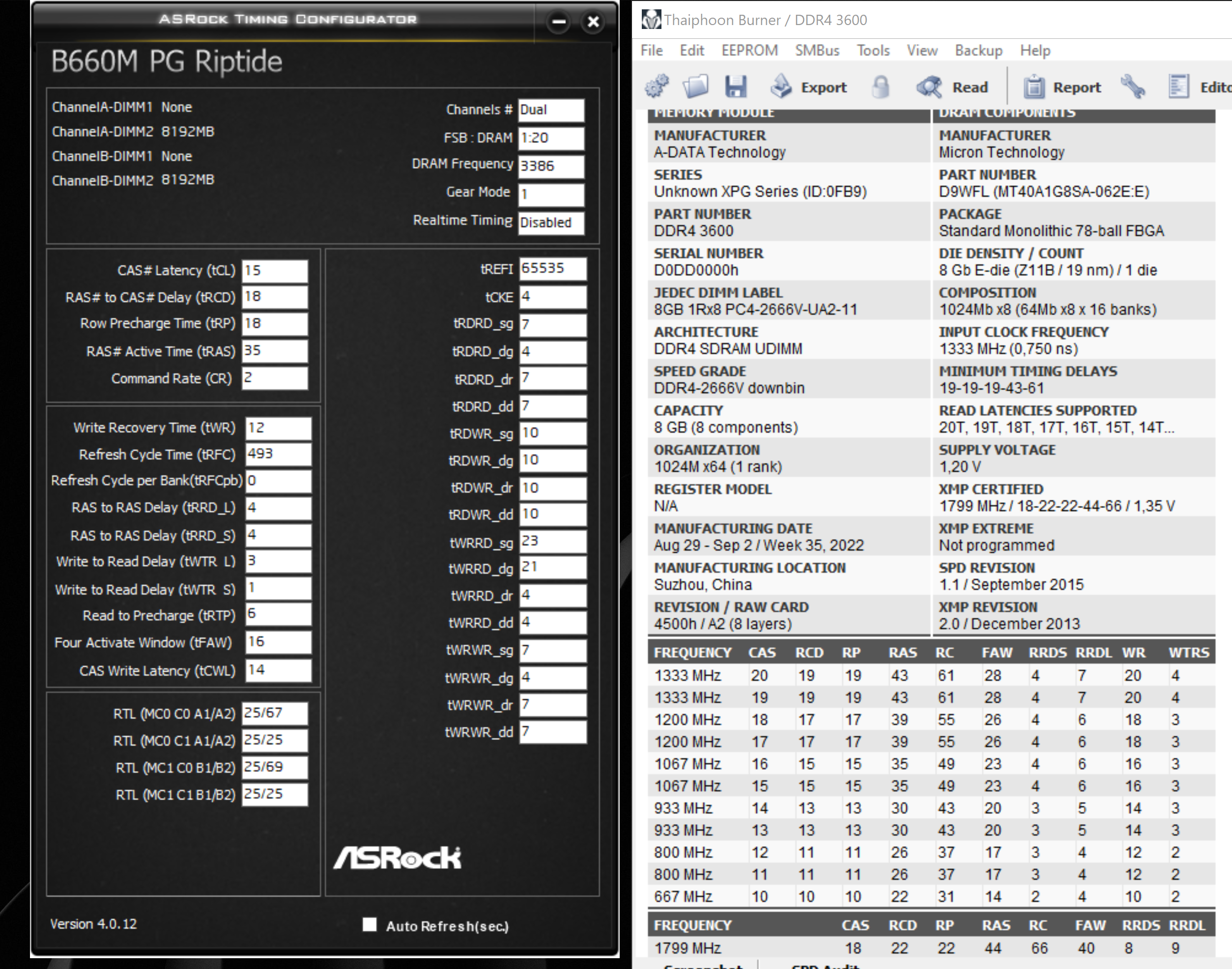 Если будет возможность взгляните на тайминги, все ли Ок? ADATA XPG Gammix D45 3600 MHz 8x2 (riptide b660m, i5-12400f 5080Mhz), Ваш Extrime MEM5 проходит.