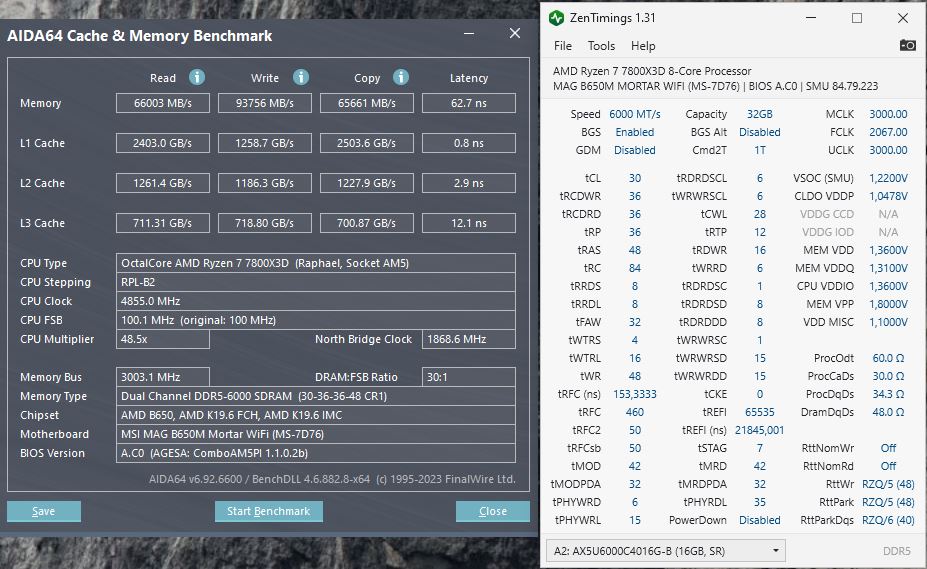 Камрады привет. Подскажите, куда копать, задержка в аиде 65нс стабильно, хочу меньше. Модули М-даи с XMP на 6000Mhz 40-40-40-76 Как-то получалось 62нс, но потом ковырял дальше и не нашел тех настроек снова. А тут видел у людей и меньше 60нс