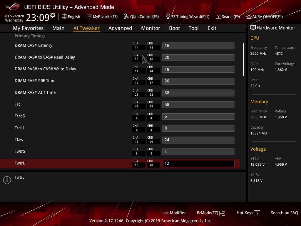 Phenomenum если отталкиваться от алгоритма разгона (в шапке от i2Hard) то в первую очередь устанавливать нужно некоторые вторичные, которые помогают стабилизировать напряжение, затем к основным. Если это не правильное утверждение, то основного алгоритма (какой тайминг в какую очередь настраивать) для правильного разгона нету. Все здесь говорят, что калькулятор не панацея, а лишь руководство. Если я правильно понимаю, что калькулятор мне подсказывает в каком приблизительном значении должны быть тайминги. Если я опять же правильно понимаю, 3333 и 3733 в частоте разница существует (хотя бы в работе FCLK. У Вас при повышении частоты +400 тайминги останутся такие же как и при 3333? Думаю нет, отсюда и задержки вырастут и и.д. Что касается совета "с начала" первичные от калькулятора мало чем отличаются. TRCDR +1 (19vs20), 18 он здесь у мало кого может. TRFC настраивал от калькулятора (653) вниз с шагом -20 до не запуска системы, потом возвращался с шагом +10 и ещё вниз -5 (по принципу разгона видеокарты). При нахождении минимального значения плюсанул до кратности "8". Если что то не правильно, то прошу помощи именно не в значениях, а в алгоритме. У меня получилось 20 настроек - 20 шагов при настройке.