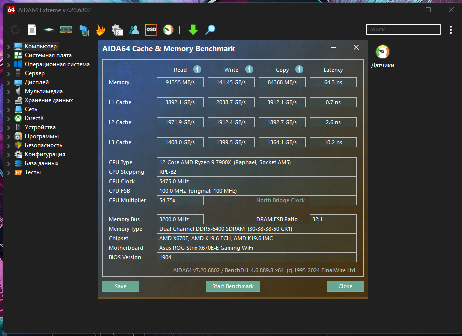 С другой стороны, чтение 92 000+ на 6400 МГц. Я у себя 89 700 видел максимум. А вон, у товарища выше с материнкой той же серии, на таком же ЦП - 92 000. Но копирование ниже, с какого-то перепуга.