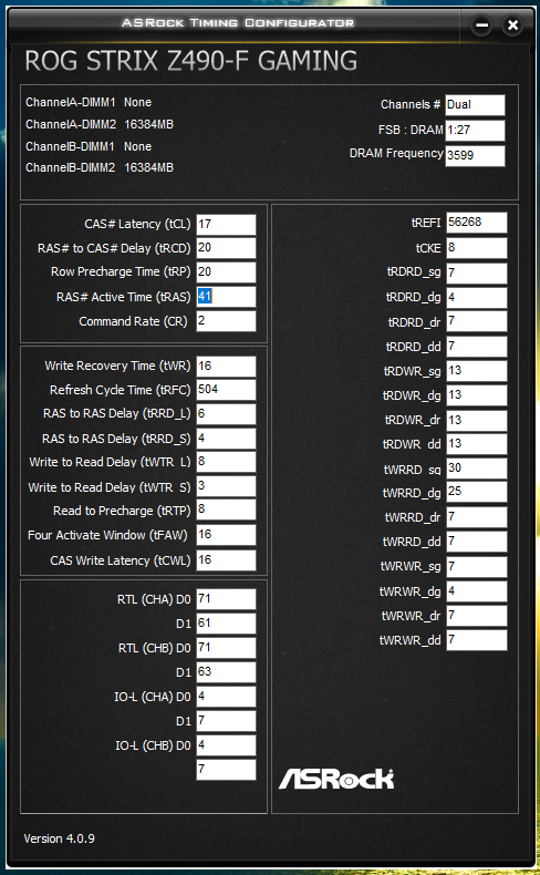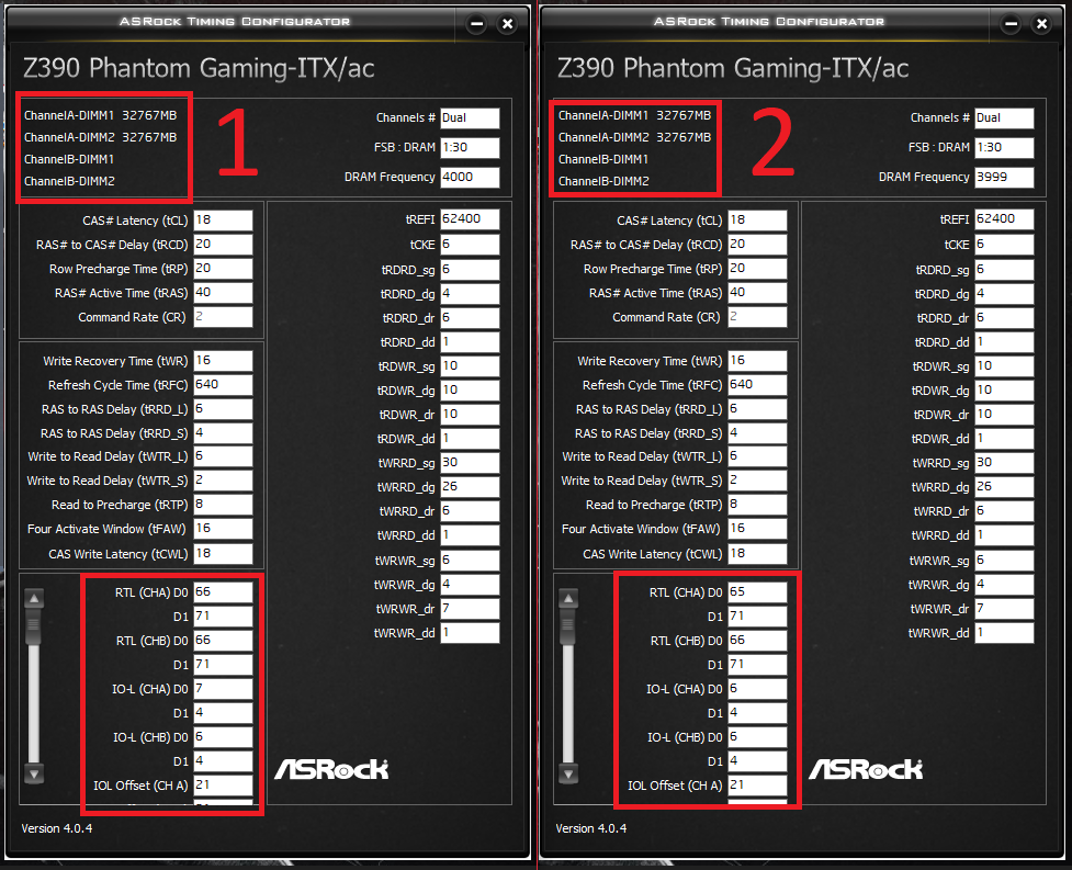 Всем доброго времени суток! Товарищи, имею доску M9H на 2003 биосе от M10H (то бишь на моей чип Z270 с поддержкой всех плюшек от Z370), а к ней в придачу камень i9-9900KF, и два набора памяти 2х16: Crucial Ballistix BL16G30C15U4B.16FE и G.Skill TridentZ RGB 3600C16D-32GTZRC. Исходя из шапки темы и вводных данных имеем: Баллистик работает в ХМР на 3000 МГц при 15-16-16-35 на 1.35В, G.Skill же держит XMP на 3600 МГц при 16-19-19-39 на тех же 1.35В. Вопрос следующего рода: хочу получить толковую оперативу на 4000 МГц с меньшими телодвижениями, верно понимаю, что стоит оставить Баллистики и с ними шаманить? Или с Г.Скиллом удастся также взять желаемую частоту? Тему прокурил достаточно, но хочу услышать мнение от гуру. Ну и подскажите тогда уж до кучи первички для Баллистика на 4000 МГц, и какие ещё параметры крутить, помимо вольтажа на 1.45 для оперативы