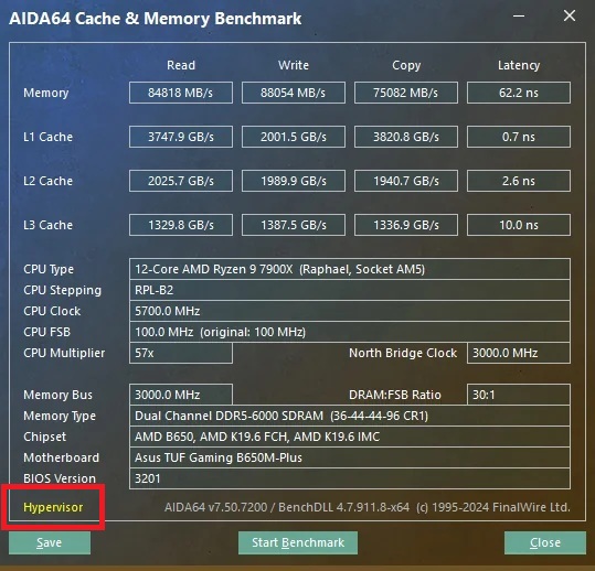 Проверить отключился ли гипервизор можно запустив тест памяти AIDA64