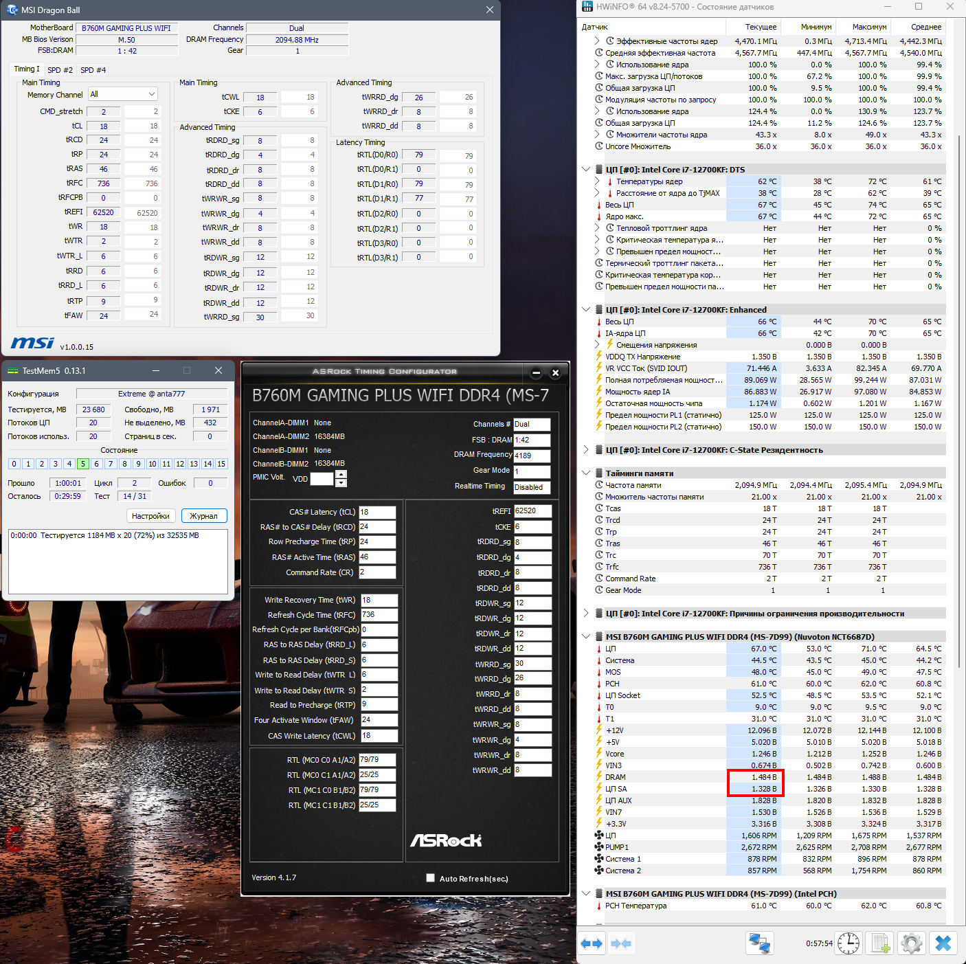 Еще можно попробовать настроить VCCPLL (CPU PLL). Напряжение PLL зависит от модели CPU, для Alder Lake = 1,80–1,85В. Значение: по умолчанию 1,8 В. Для Rocket Lake = 1,5-1,6В. Снижение джиттера -> tRFC минус 8–12 нс, но максимальный безопасный VCCPLL = 1,85В, для Alder Lake. Превышение приводит к деградации контроллера памяти за 6–12 месяцев.