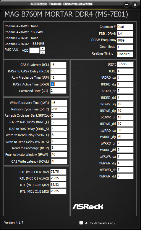 вот что получилось, tWR=12, tRTP=6 (но почему то отображает все равно 8, хотя в ручную задано 6) tWTRS = 3(2 не стартует компьютер) и tWTRL = 6. asrock timing configurator почему то чуть по другому отображает, да в биосе почему то слева tRTP=8 тоже. Соотв по форумуле WRRD_SG = 28, WRRD_DG = 25. OCCT уже прошел, щас Anta Extreme прохожу, пока полет нормальный. но я немного запутался с этими значениями и их отображением.