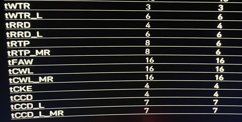 Я бы еще попробовал ужать tWR = 14, tRTP = 7; или еще меньше (12 и 6 соответственно); Но это + нагрузка на КП. Может и не быть профита от этого никакого. В этих условиях, может вполне работать tWTRS = 2 и tWTRL = 6, с ужиманием WRRD_SG и WRRD_DG. Вот это обычно сильно дает прирост при меньшей доп. нагрузке на КП.