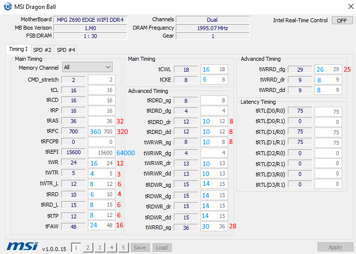 Синим - нормальные для этой частоты и чипов; Красным - агрессивные. Менять все сразу или зависимые - парами, например tRTP tWR, tFAW tRRDS; Более агрессивные - можно, но нужно больше опыта и тестов.