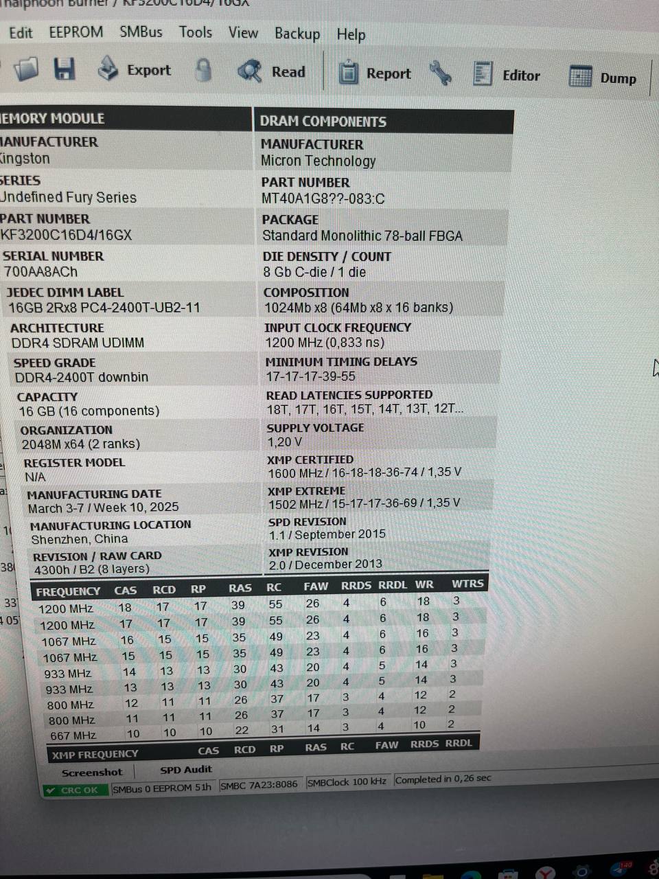 [img]Ссылка на скрин[/img] Для сбора статистики по установленным чипам памяти просьба прикладывать скрины программы Taiphoon Burner и указывать напряжения на DIMM, IO и SA![/color]