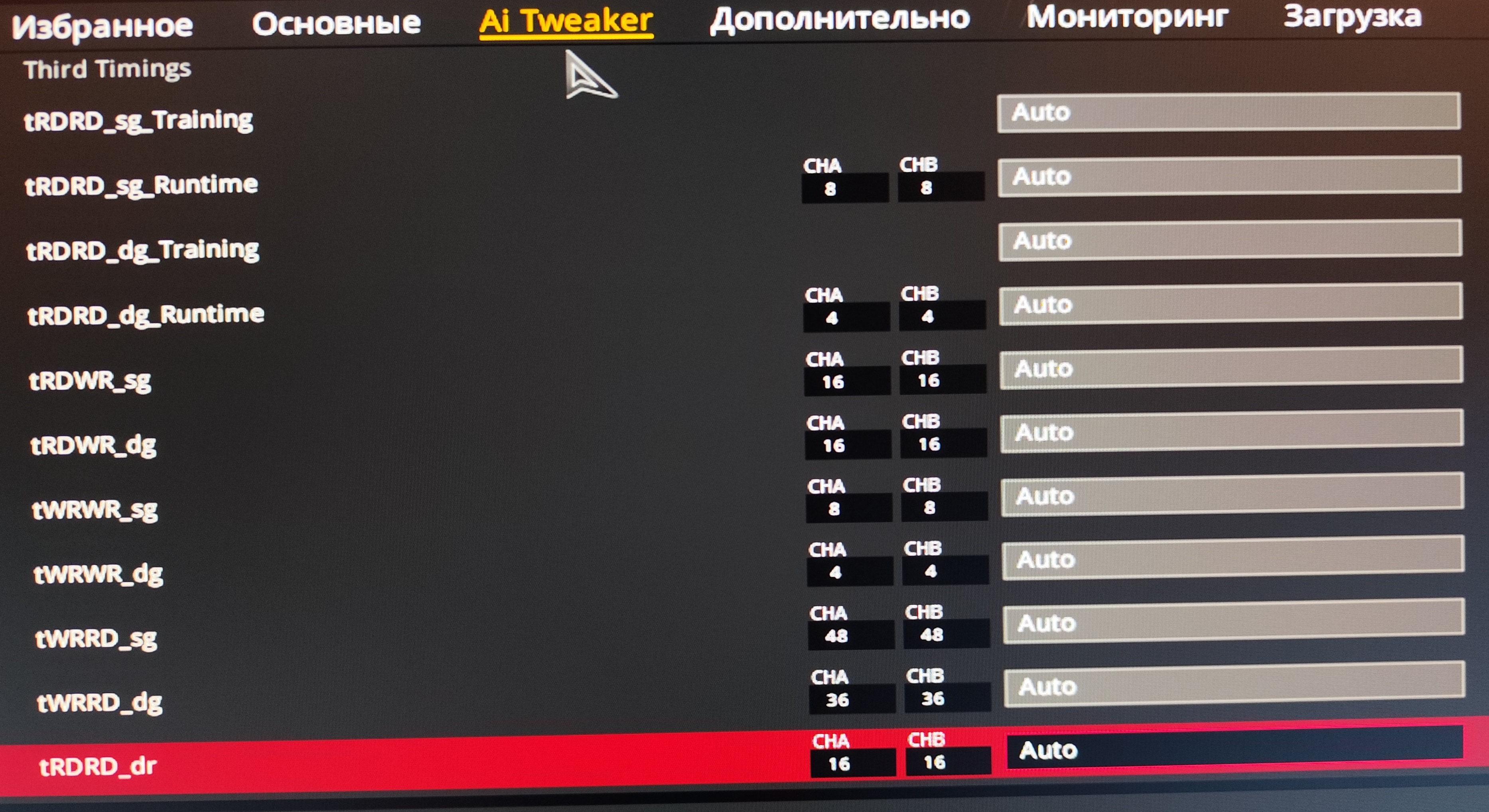 Универсальный гайд. 0. Устраните любые потенциальные проблемы с другим железом. Снимите разгон с видеокарты, снизьте частоту цп на 300 с сохранением напряжения. Не забудьте вернуть RTL в авто если сейчас не авто. 1. Крутим очень короткий мемтест, то есть если минуту живёт сразу снижать тайминг дальше. Ищите не стабильность, а явно сбойное значение тайминга, запишите его - пригодится. Гораздо проще найти явно нерабочее значение и от него плясать чем пытаться ловить нестабильность часами. Это также помогает диагностировать сбойные тайминги на ранее "стабильной памяти". Не пытайтесь найти предельные значение сразу. Сначала скрутите до +2 от минимально стабильного. Многие тайминги идут параллельно поэтому бессмысленно пытаться скрутить до упора с первого прохода. CR выставить на 2 если стоит 1. В самом конце можно попробовать скинуть до 1. 3 Ставить только на очень большую частоту или если по другому ну совсем никак.