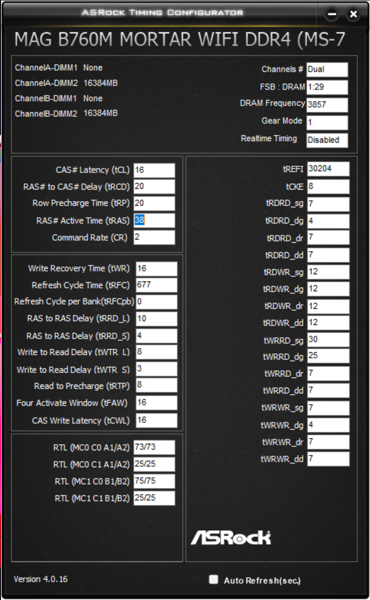 Так уже давно никто не делает -) Проще сделать один скриншот из Asrock Timing Configurator, MSI Dragon Ball или HWiNFO64 (только по памяти); Потому что названия могут отличаться от общепринятых. Да и в программах все на виду, не надо листать кучу скриншотов и складывать слова в tREFI или tRRDS. За это в т.ч. я не люблю биос от Asus. И за "фривольные" названия (например, PCH 1.05 - ну какой это хаб? CPU 1.05 правильнее; у чипсета - да, хаб). Думаешь, есть куча времени это изучать? -) Если я правильно "угадал", то tREFI слишком низкий. Что по стабильности? Проходит тесты?