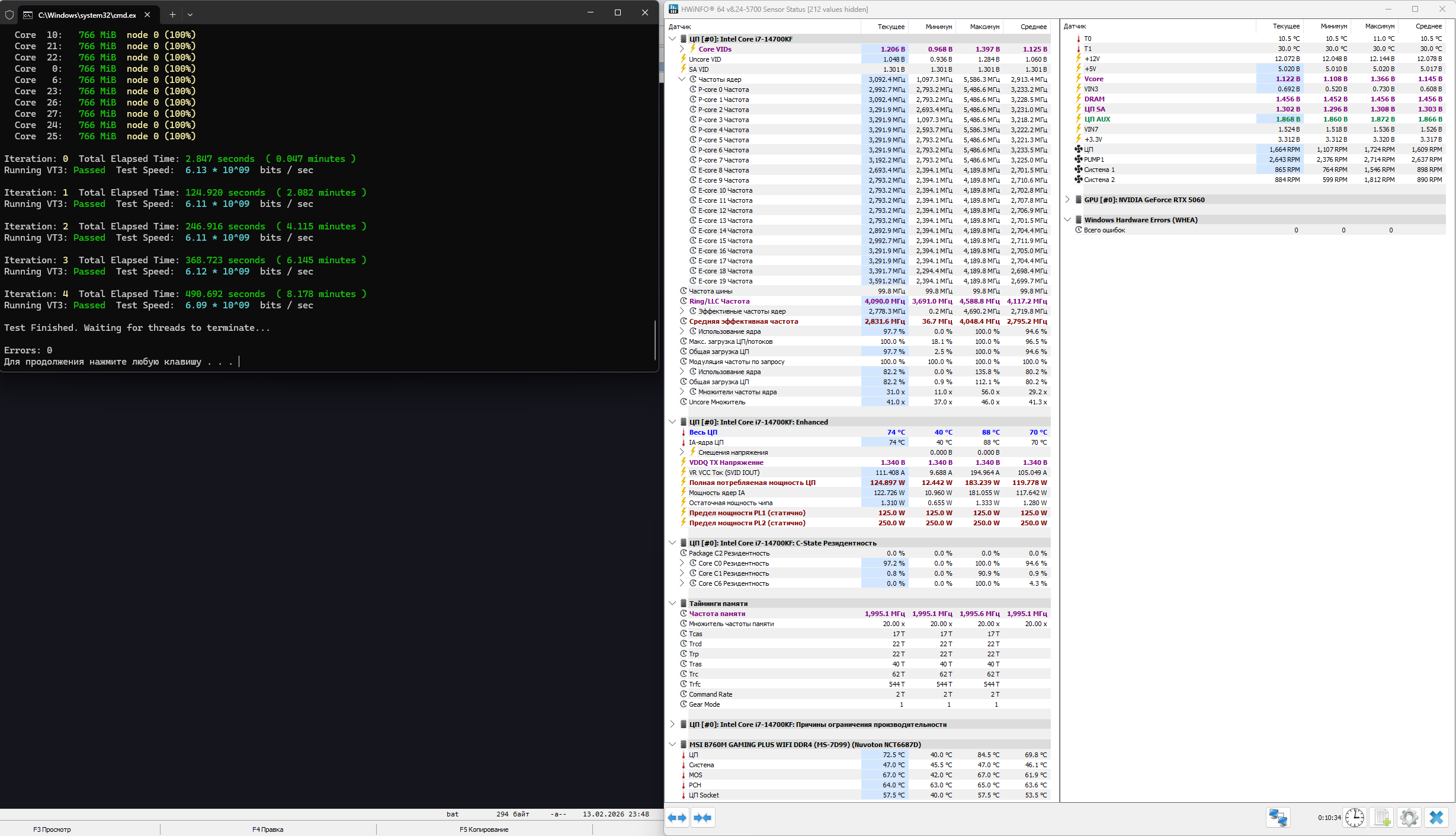 Добавлено спустя 1 час 5 минут 25 секунд: Накатил обратно свои настройки, но сбавил частоту до 4100. 2 раза прошел y-cruncher VT3, между тестами выключал комп, отключал БП. Сейчас TM5 крутится.