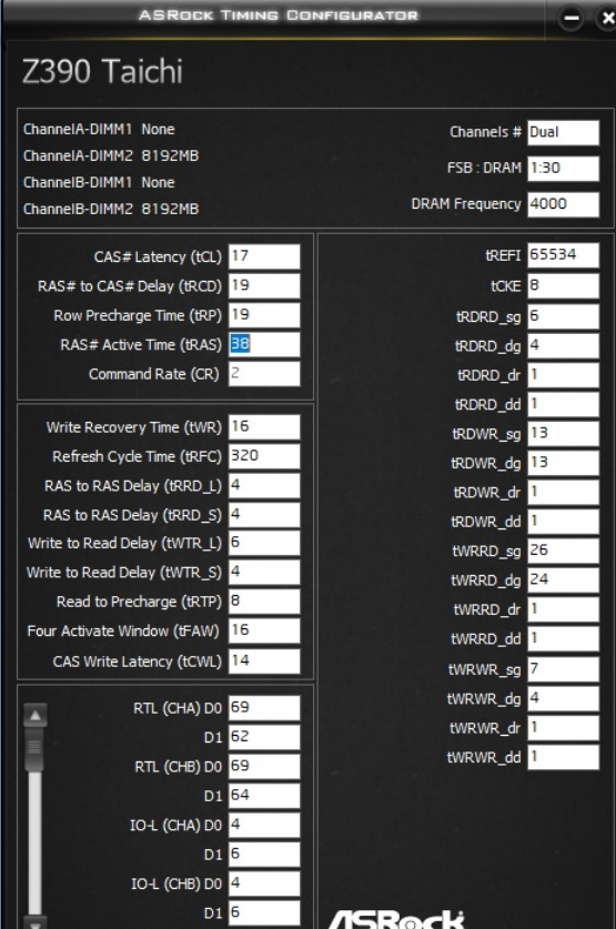 tRASmin=tCL+tRCD+2 WTRS/L устанавливаются в биосе через WRRDdg/sg согласно формуле: WRRD_sg=6+CWL+WTR_L WRRD_dg=6+CWL+WTR_S WR - через WRPRE (для матплат ASUS): WRPRE=4+CWL+WR RTP - через RDPRE (для матплат ASUS) RDPRE=RTP