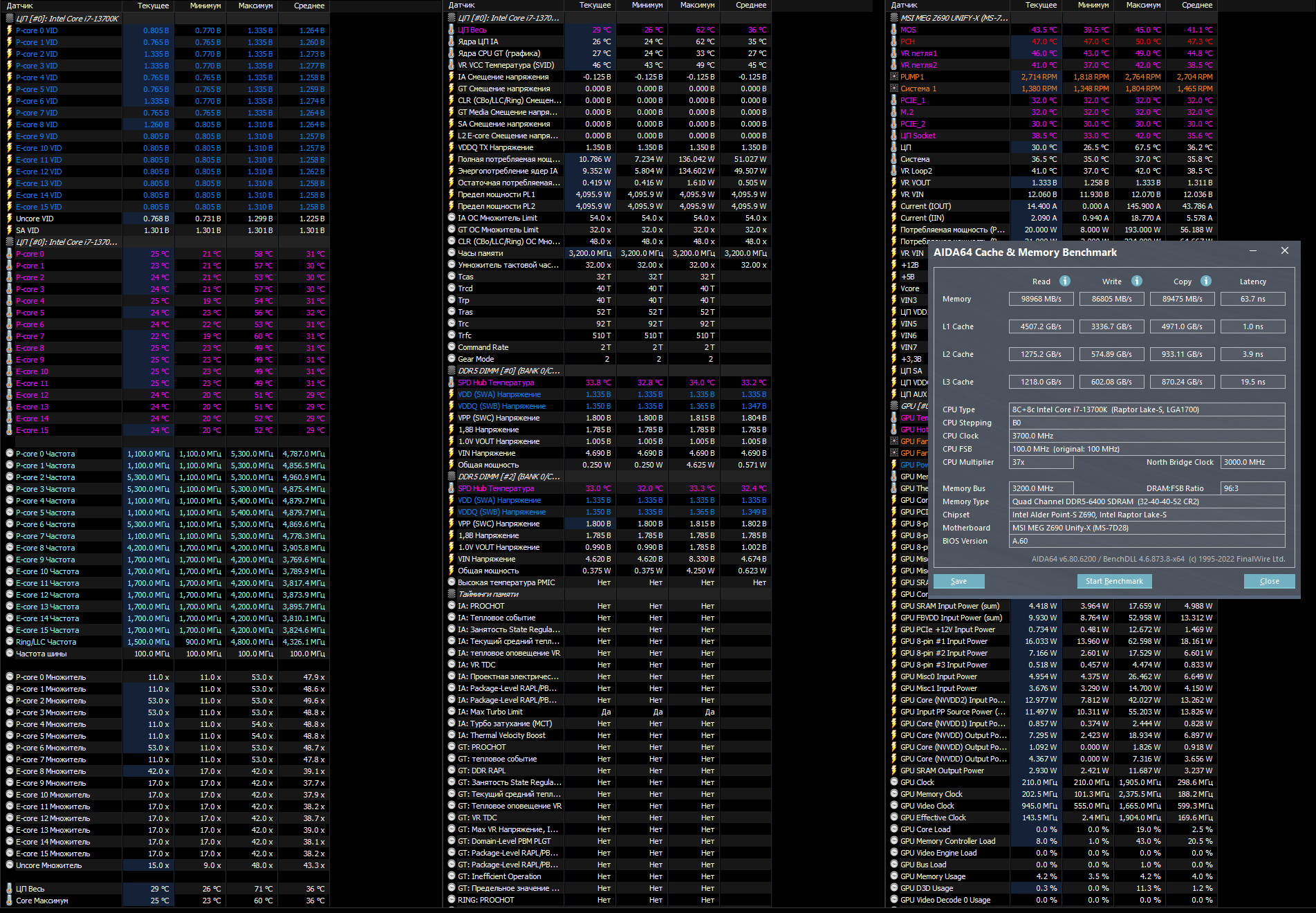 Здравствуйте всем! Собрал новый пк ( i9 12900k, msi z690 force, Kingston FURY Renegade Silver RGB [KF564C32RSAK2-32] 32 ГБ). на стоковом биосе xmp профиль 6400 не берет, система не стартует. На последней прошивке биоса система стартует, но в тестах валятся ошибки и любая игра вылетает почти сразу.( но всё стабильно на xmp профиле 6000). Чипы хуниксы. были сделаны попытки настройки самому: 1) настройка от pakhtunov https://forums.overclockers.ru/viewtopic.php?p=17807131#p17807131 (валятся тонны ошибок в TestMem5 на конфиге extreme) 2) настройка с отзывов dns (аналогичная ситуация) 3) была включена опция BCLK 100MHZ Lock On - Enabled из отзывов (аналогичная ситуация) 4) была включена калибровка по линиям питания Mode 5 из отзывов (аналогичная ситуация) Если кто-то поможет и объяснит как завести сие чудо на частоте 6400, которая указана в названии продукта, то буду очень признателен. Может я какую-то настройку важную упускаю, так как настройкой руками занимаюсь впервые (тайминги и т.п.). Может версия Биос г*вна (Хотя на стоковом комп вообще не стартовал на 6400 xmp) заранее буду очень благодарен, если кто-то поможет такому новичку, как я.