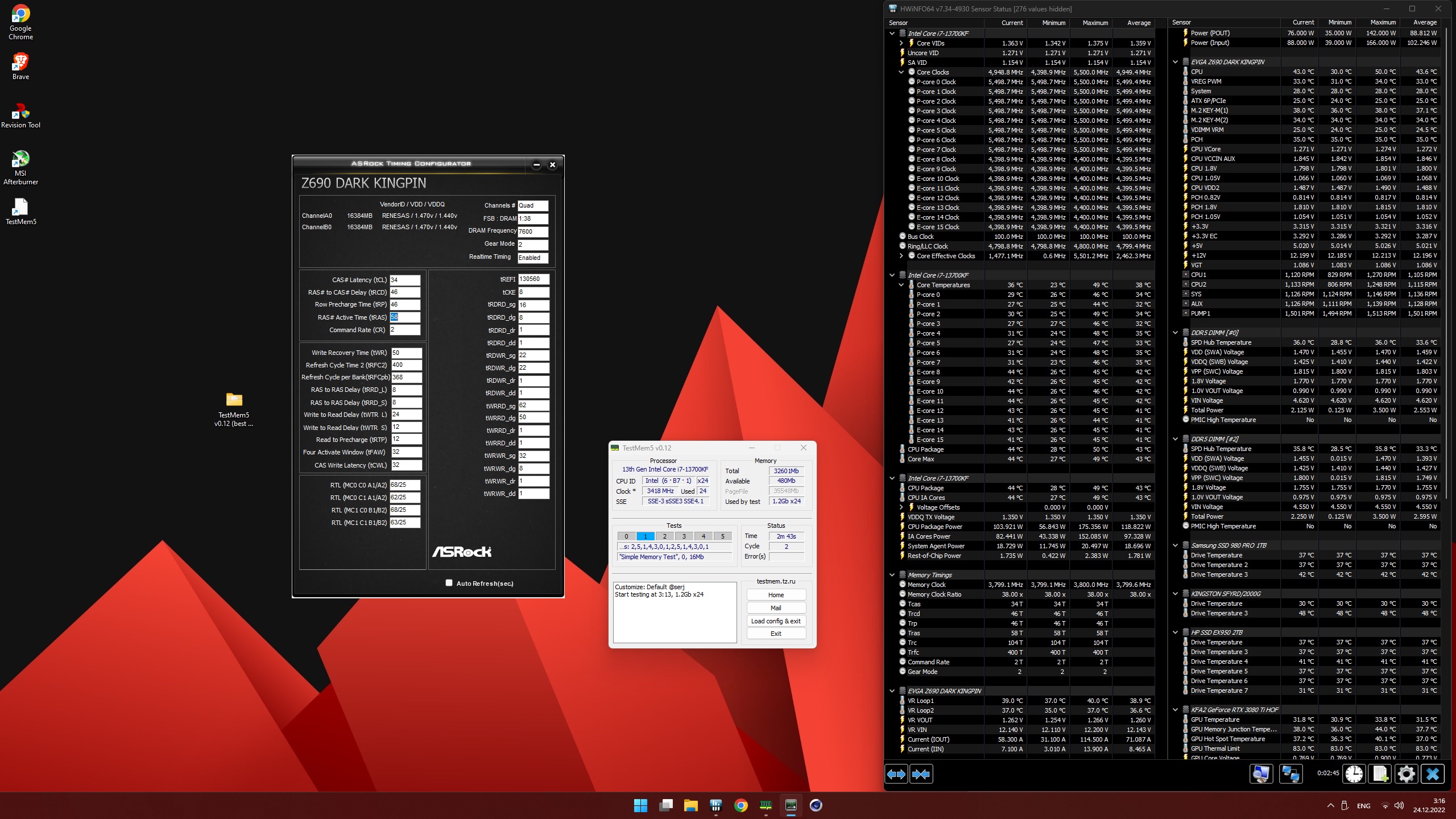 Удалось немножко ужать тайминги. Не знаю, стоют ли лишнии 0.3 мв того или нет . #77 После 20 минут мемтеста память прогрелась до 58С. На 4С больше чем при 1.35в. Ну не знаю, разница процентов 10 , а летом бы точно не стал ставить 1.395