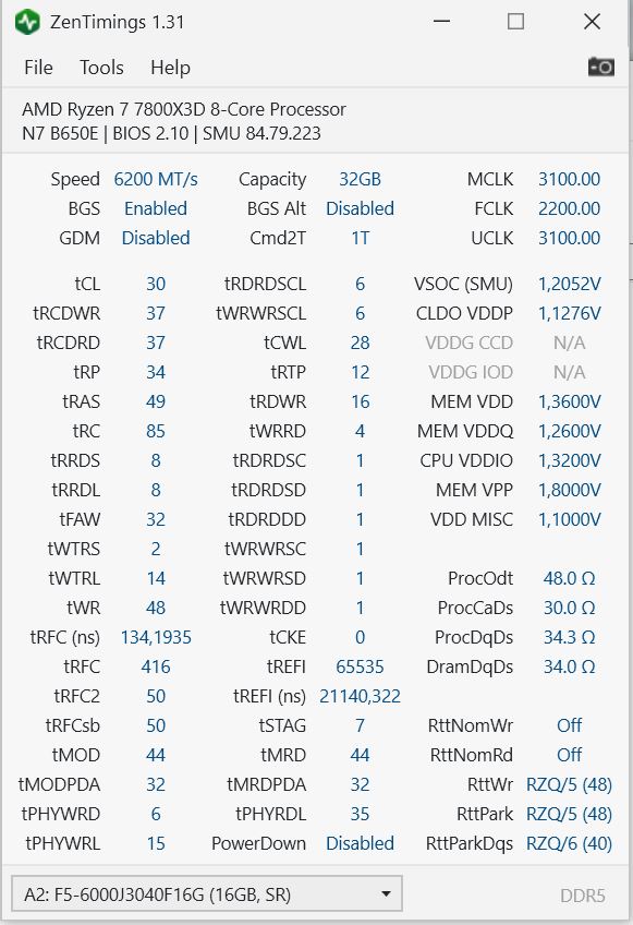 Добавлено спустя 5 минут 6 секунд: короче нашёл по моему мнению максимум моих планок на 6000мгц который работает стабильно (только в вольтаж в итоге позже ниже сделал) и запустил всё-таки на 6400 тоже всё стабильно но вольтаж и как следствие температура меня не устраивают по этому сейчас работаю на 6200 и вроде это будет оптимально