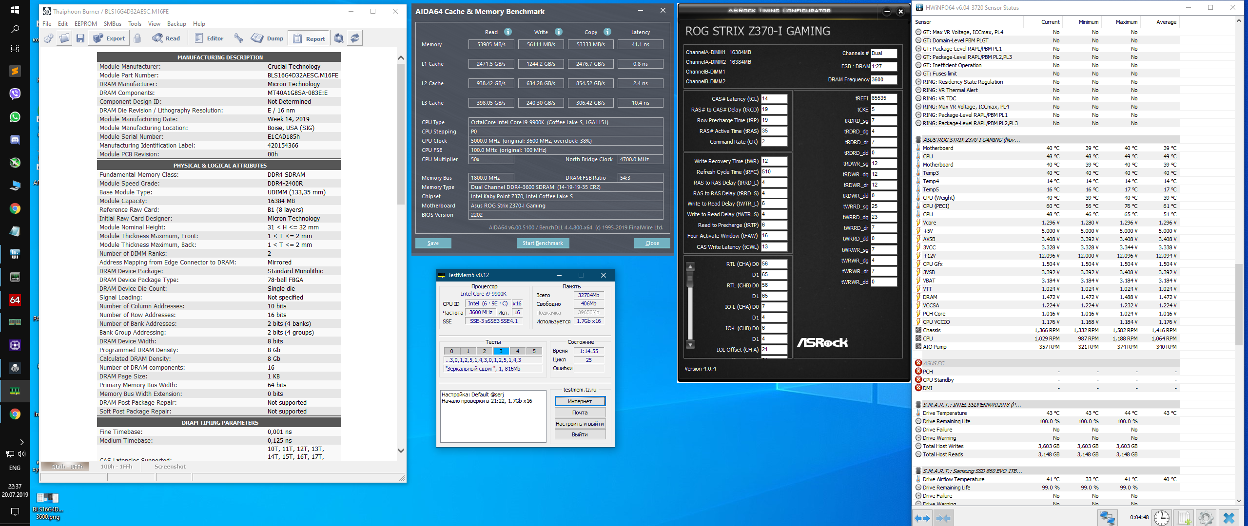 Для начала благодарю товарищей за инфу по RTL, много нового узнал, ~2.5нс на задержках ужал. А также товарища Agiliter за предложенные приоритеты в смене таймингов, управился раза в 2 быстрее, чем обычно. Жаль сам раньше не додумался tRFC в самом конце крутить. -_- Пробовал двуранговые E-die 2*16gb модули Ballistix BLS2K16G4D32AESC. Результаты относятся и к их собратам BLS2K16G4D32AESBBLS2K16G4D32AESE. Плата облеплена принудительным обдувом vrm и памяти, потому будет ли работать также в других условиях - не знаю. Выше 3600 cr2 не заводятся никак. Зато на 1.45в+ CasL держут 14. На 3600 tRFC очень большой, ниже не падает с любым tREFI. Ядра 5.0 и 4.7 северник на 1.3в выставлены просто для результатов поближе к типичным. На используемой мат плате 9900k особо гнать не стоит) tRAS на +4 (37) и на +2 (35) в аиде показали себя примерно одинаково, хотя на +2 среднее число в задержках из 15+ прогонов лучше. В RTL действовал по методе снижения оффсета. Пока не зафиксировал в биосе сниженные RTL, плата стартовать отказывалась наотрез. Одних фиксированных iol CHA/CHB ей было мало, похоже пыталась вернуть обратно сниженные RTL. Дальше вижу только снижение io/sa. 114 циклов TM5 прошлой ночью без настроек RTL выдержали. Вылетов из игр/лагов/двойных стартов/проблем со сном за день не выявлено. Linx гонять не стану, ключи цепи погорят)