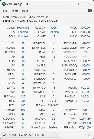 Нужно совет, занялся настройкой памяти, 7800х3д б650А стрикса, память адаи тикрейты експерты, нужно от знающих такая инфа: 1. Фабрику ставить 1к3 или можно любую какая стабильно работает (читал гдето что 1к3 лучшая пропорция, типа при 6000\2000, при 6200\2067 и 6400 если камень может то 2133), так ли это? 2. Вопрос номер два, какие допустимые для 24\7 напруги на сокет и кп проца( видел на скринах у людей кп проца и 1.3\1.4, на сокет и 1.2\выше)? Память с обдувом jonsbbo nf-1, до 51 градуса в пике по датчику, перегревов нет, сейчас работает 30-37-37-37-49-86 на частоте 6200, напруги в биосе 1.2 сокет, 1.26 кп проца (по мониторингу hw на сокете 1.224, на кп 1.312 при тесте карху), нужно понимать для себя если 6400 траить, то какой предел напруг для 24\7?