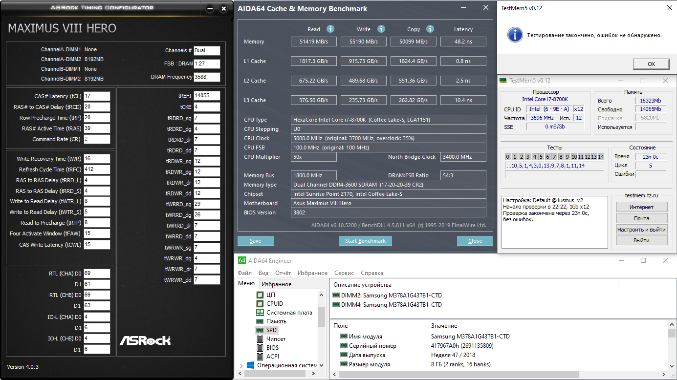 4 планки никак больше 3066Мгц не берут, 3200 даже с 20ми таймингами сыплются ошибки. Надоело ковыряться решил оставить на 30066, три планки китай одна малайзия. Вот думаю есть влияние или нет от солянки.