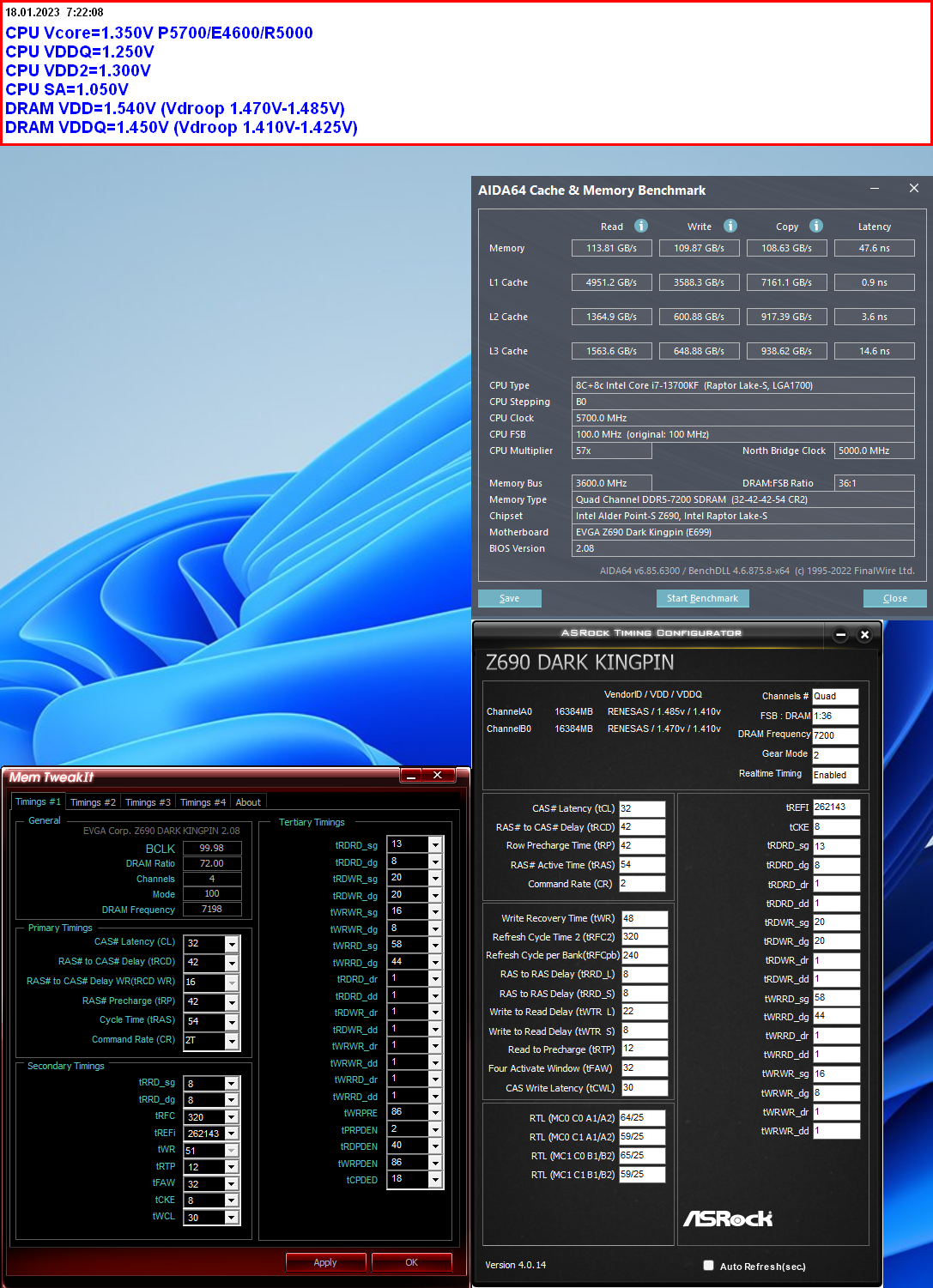 13900K, к нему Arctic Liquid Freezer II 420, Asus Rog Maximus Z790 Hero и сразу что б наверняка поехало на норм частотах G.Skill 32 GB (2x16GB) DDR5 7600 MHz Trident Z5 RGB (36-46-46-121 / 1.4 V / Hynix A-die), фишка в чем... биос последний, всё сток, вкл xmp и запускаю тест extreme@anta777, спустя 10-20 минут ловлю ошибку