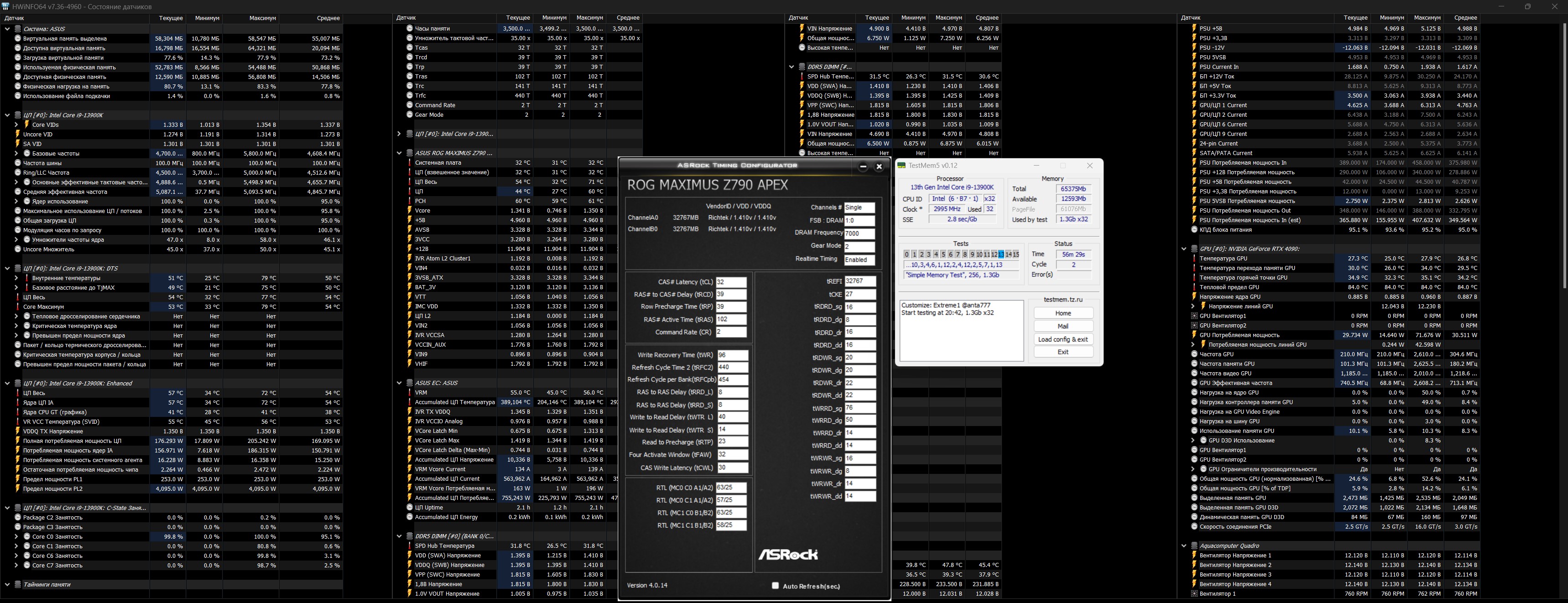 вот скажите чего мешало z690 экстриму запустить хмп хотя бы 6400 процессор тот же sp 101 mc sp 73 , мемори комплект (а дай 6400 дуалранк 64 гига), тот же что сыпал ошибки на любых напругах на экстриме 690 это конечно не 9000 но это и не sr 32, причем я просто от балды выбрал частоту после хмп -сохранить и выйти, может она и больше сможет ? ну я надеялся хмп если будет- уже хорошо апекс животворящий? вода на памяти?
