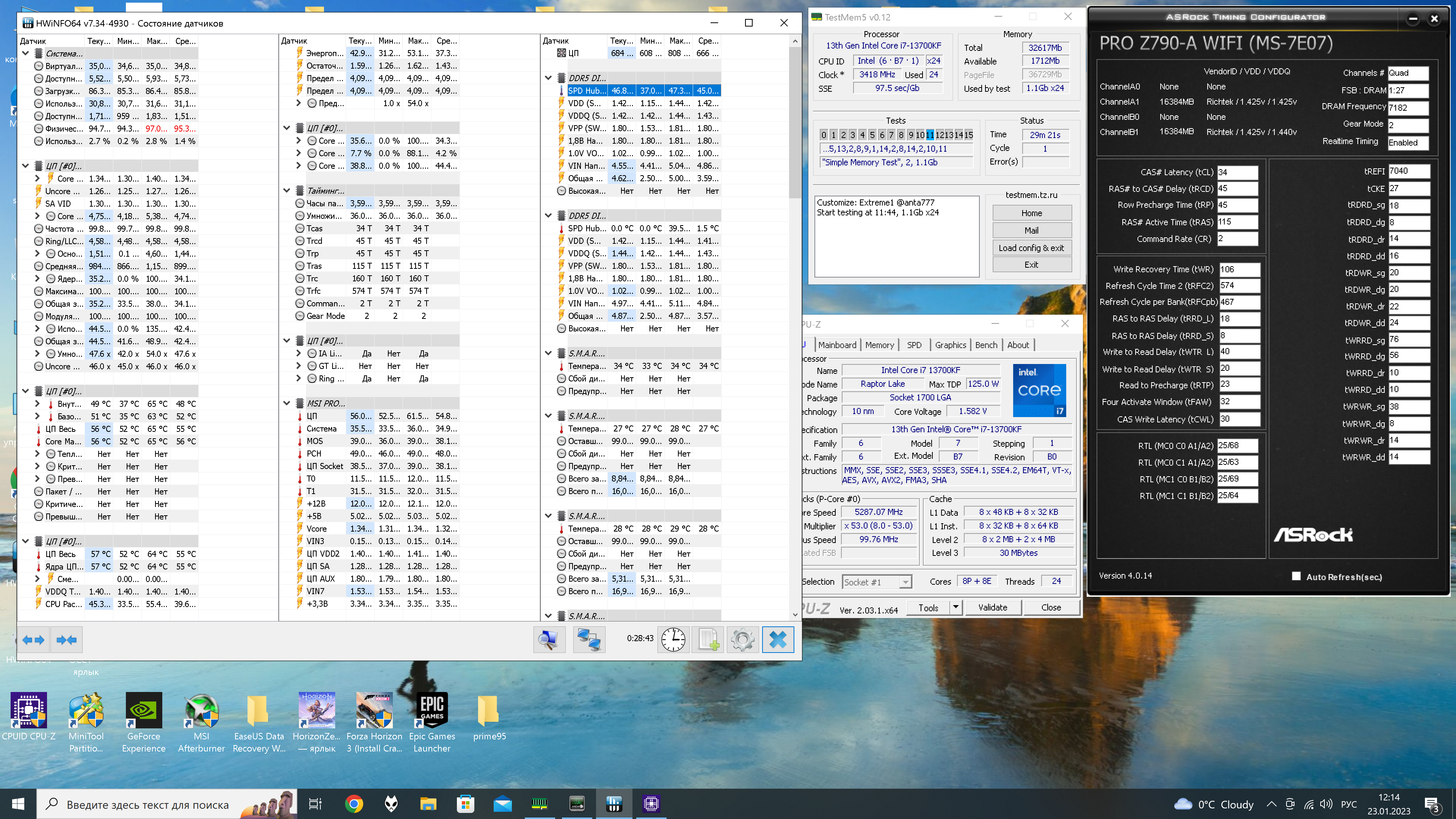 Буду потихоньку настраивать на частоту. P.S.S. Заметил на 13Gen. Intel 7000-7200 CR1 запускается, но почти сразу BSOD в винде, на 12Gen. Intel такого не было (плашки и плата те же).