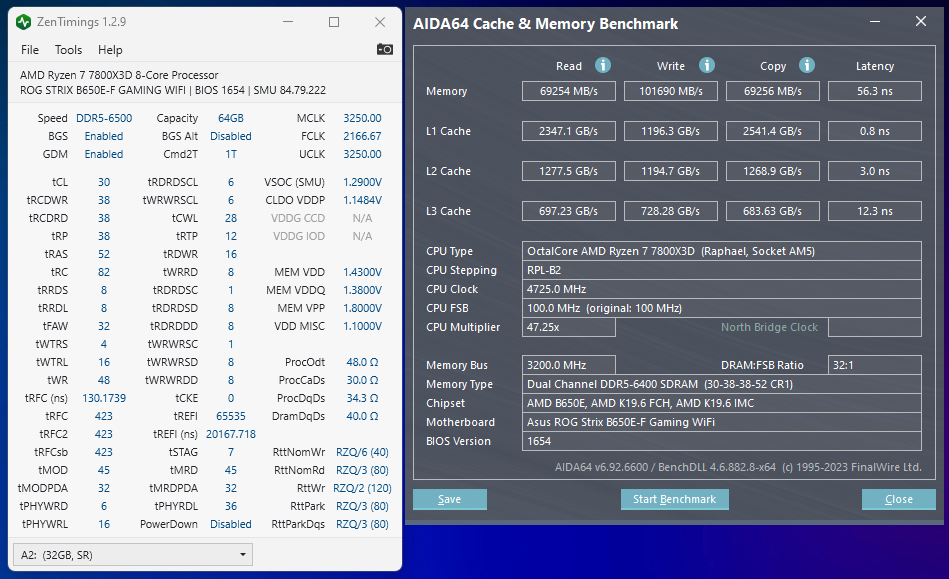 Здравствуйте. Скиньте пожалуйста тайминги на ddr5 2x24gb 6400mhz. Купил kingbank 2x24gb 6800. Хочу настроить на 6400 с низкими таймингами. Начинка у всех 48 гиговых комплектов одинаковая. Проц у меня 7600x. Материнка Asus x670e a gaming wifi