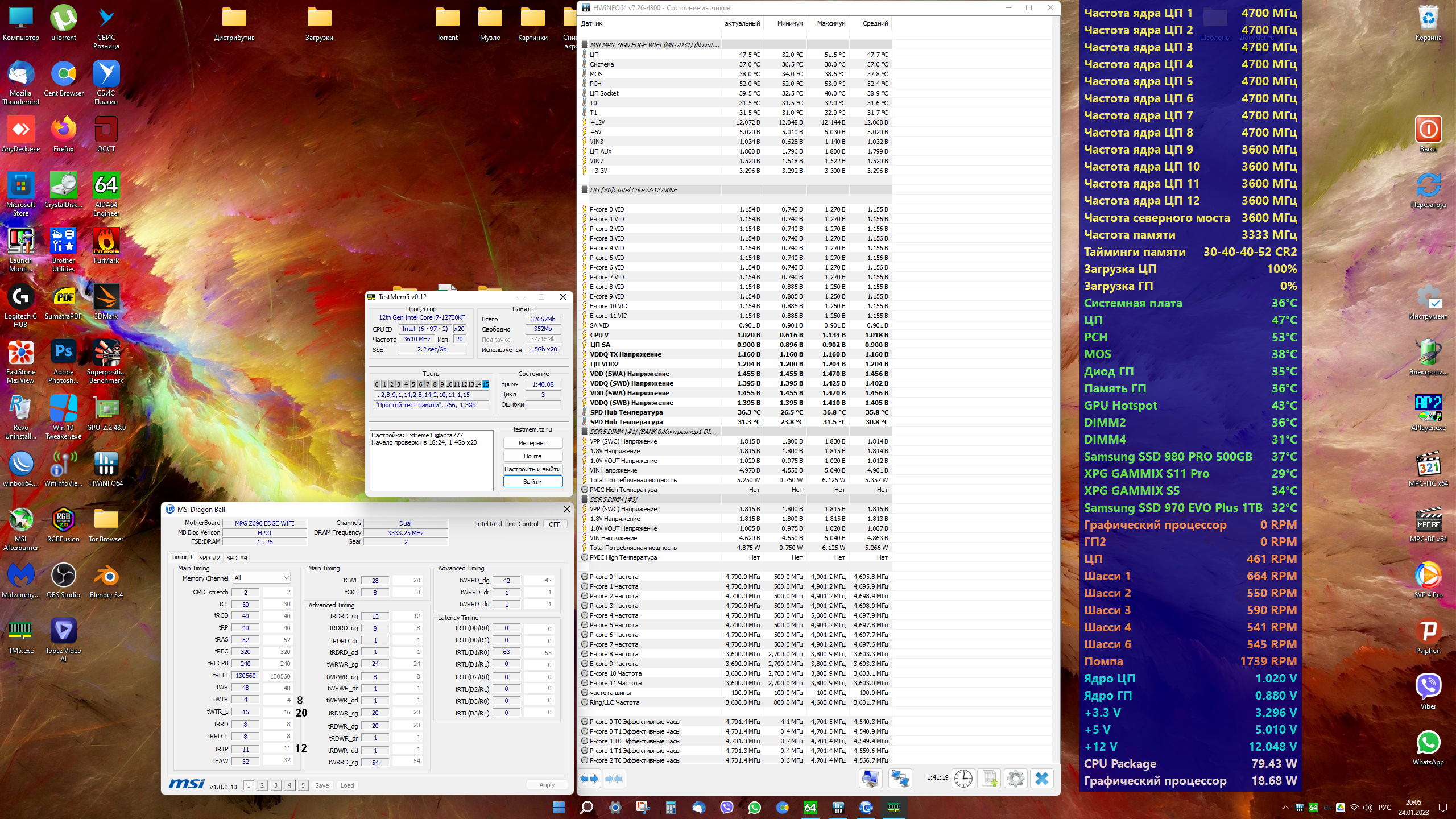 Да, я погорячился на счёт 38-50, даёт несколько ошибок. Максимум что удалось на еже 690 и 12700kf- это 6666 30-40-40-52 CPU SA=0.9 / CPU VDDQ TX=1.16 / CPU VDD2=1.2 DRAM VDD=1.46 DRAM VDDQ=1.4