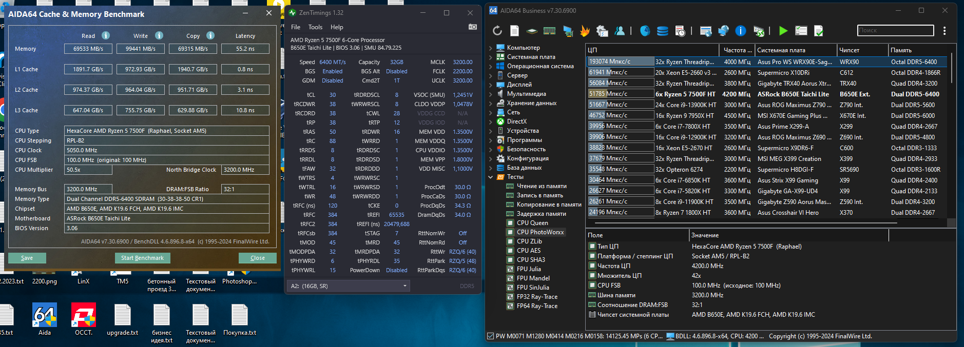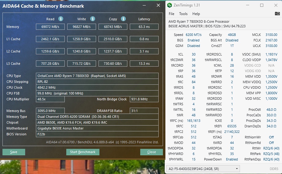 Друзья, всех приветствую! Имеется вот такой кит из ноунейм гскиллов (осст не опознаёт, адай это или мдай), Trident Z5 32/6400, 7800X3D и материнской платы ASRock B650M PG Riptide. Свою заявленную частоту по ХМП профилю плашки едут стабильно, без каких - либо проблем, с соответствующими правда скоростями и тем более задержками, на скрине приложу, но стоит начать ужимать тайминги в БИОС - получаю бутлуп. Биос последний. Выручайте! С чего начинать и куда копать, чтоб получить более адекватные показатели? Уже намучался с ними, а воз и ныне там. Спасибо!