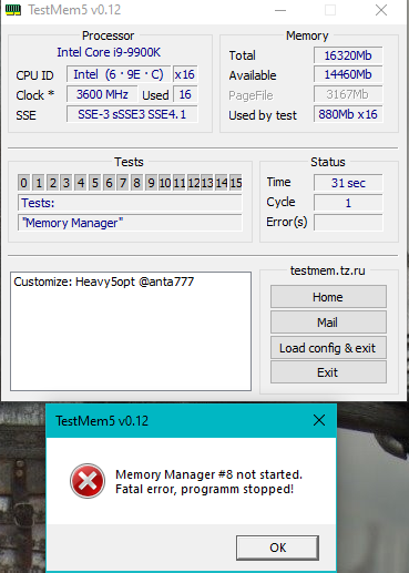 Уменьшить размер окна нужно в конфиге до такого размера, чтобы testmem5 запускался без ошибки. 1280 пробовать. У меня стоит возможный максимум 1536, что не у всех работает. У пусмуса стоит 1024. Чем больше окно, тем быстрее идет тест.
