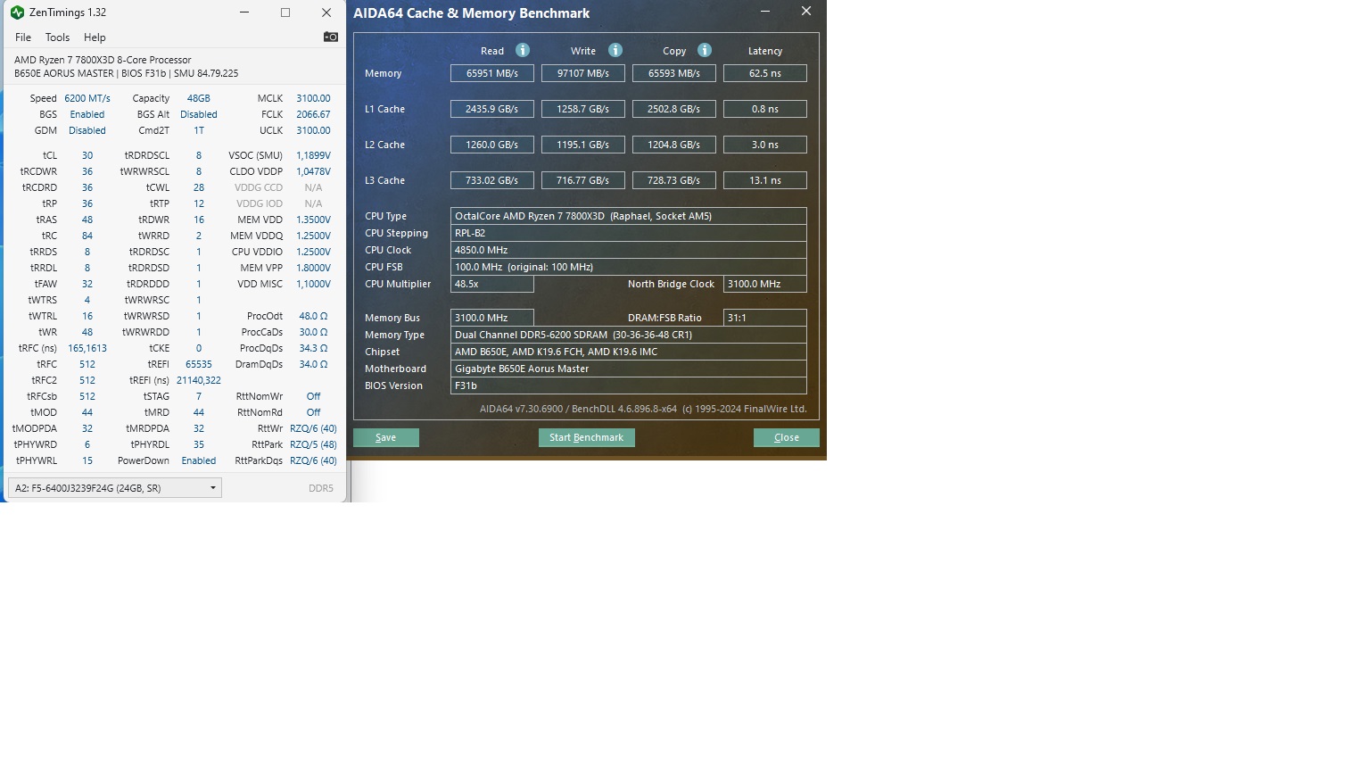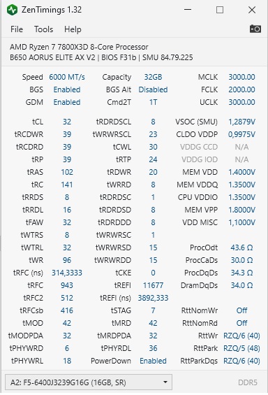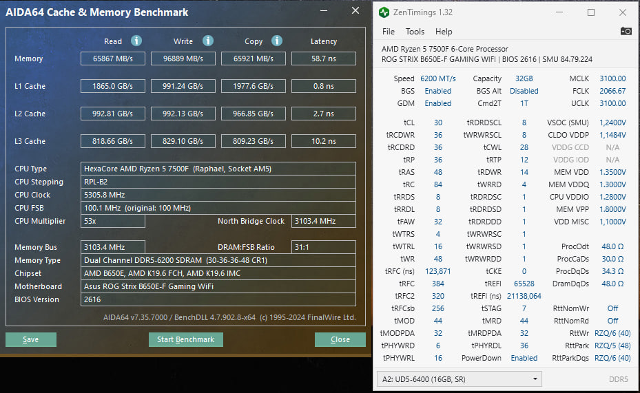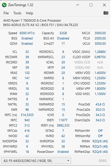 Всем привет. Интересная картина. В играх и остальных бенчмарках всё хорошо (OCCT, кранчер, карху). Но в GeekBench6 на этапе "Object Remover" ПК стабильно ловит ребут. Может не с 1 раза, а с 10-20 раза, но словит рано или поздно 100%. В полном стоке (память 4800) вроде ничего нет, вчера пару часов гонял. Так вот вопрос - с чем может быть связано? Я поставил сейчас тайминги от EXPO6400, но частоту 6000. В таком режиме всё работает стабильно, кроме опять же - гикбенч6. Может кто подскажет, вольтаж где покрутить? Скрин с zentiming прилагаю. С БП всё нормально 100%. Мать и проц на скрине, биос последний.