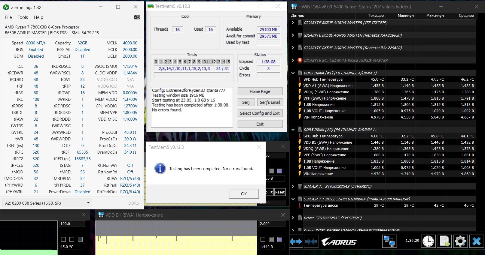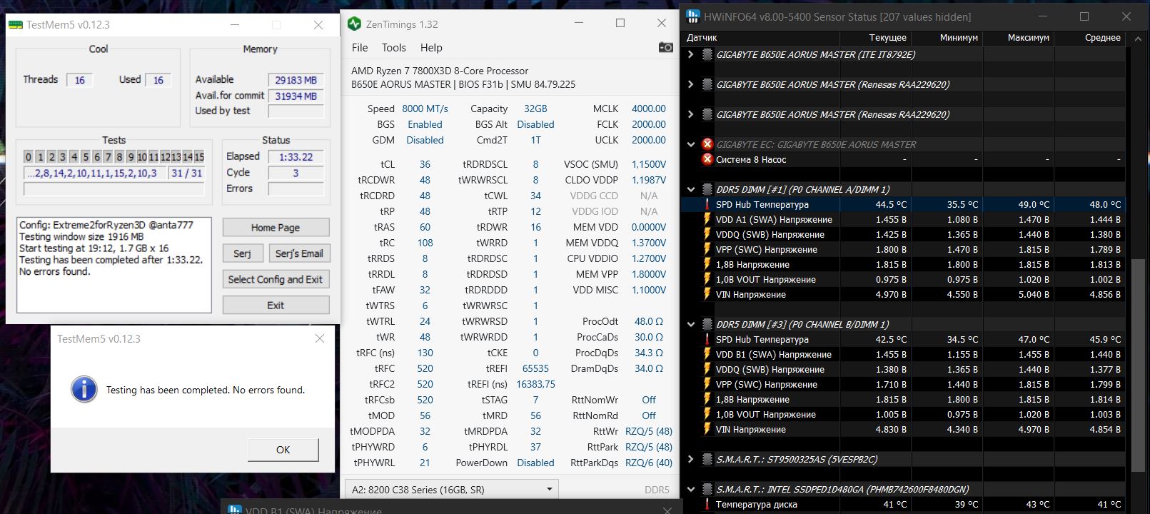 Каждому свое, так то на 3dx камнях тонкая настройка памяти вообще никакого профита кроме красивых цифр не дает, поэтому -3нс это огого А лично я 1 раз в день ПК включаю, и он работает, мне без разницы сколько был бут 10 сек или 30сек. И не понятно о каких повышенных напряжениях идет речь? Де юро, все что выше 1.1v это повышенные. Де факто 1.45v номинальны для многих плашек с пожизненной гарантией, и на практике абсолютно безопасны для DDR5.