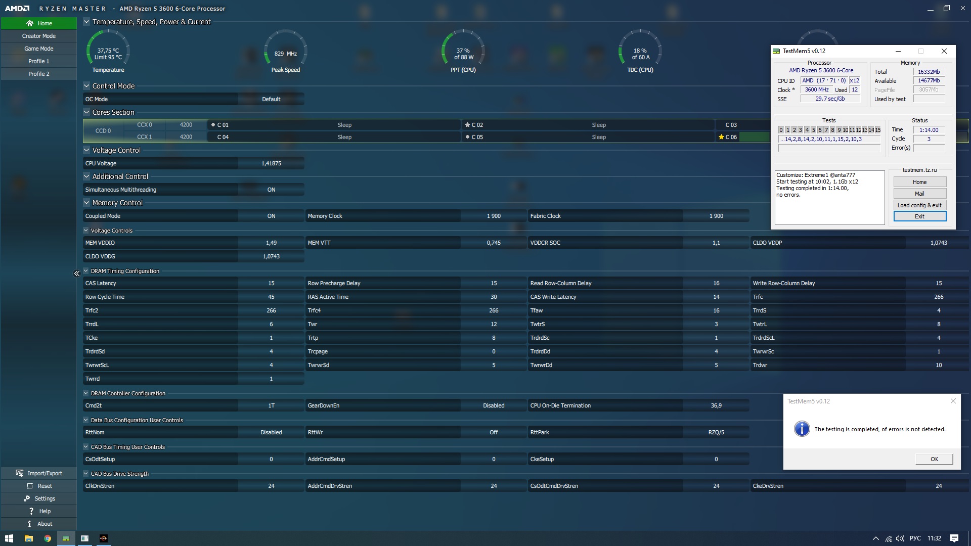 И да, относительно Zen1 и Интела почему-то вырос TRCD. На интеле и амд он работал до 7,5ns, а тут-как есть